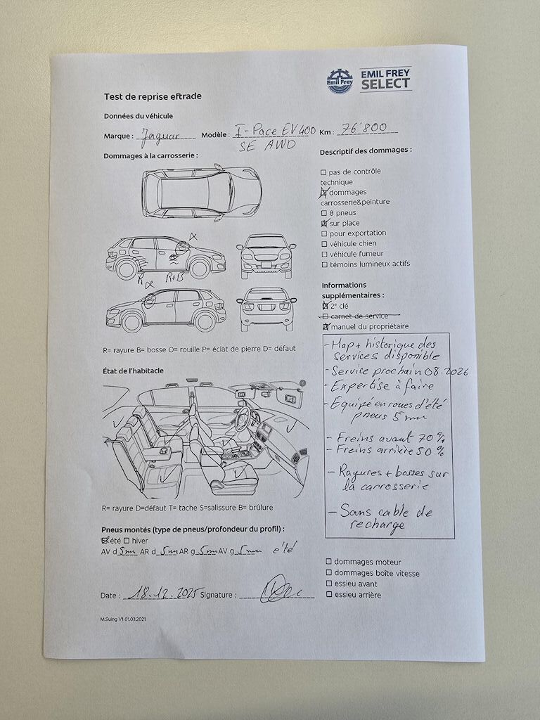 Map + historique des service disponible Freins avant 70 % Rayures et bosses sur la carrosserie |
