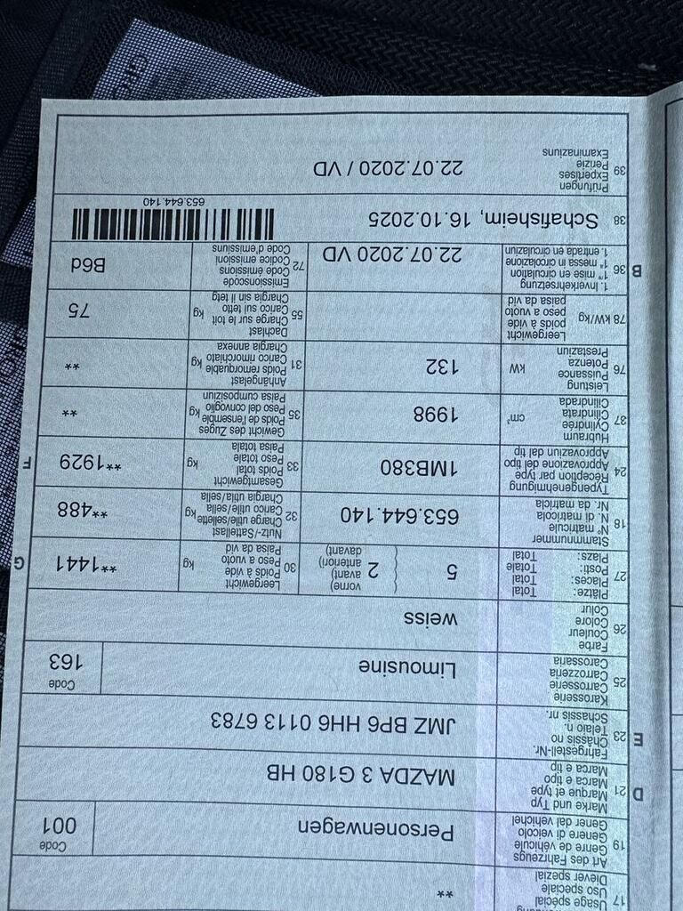 | Tipo veicolo / Costruzione / Porte | Automobile / Berlina / 5 |