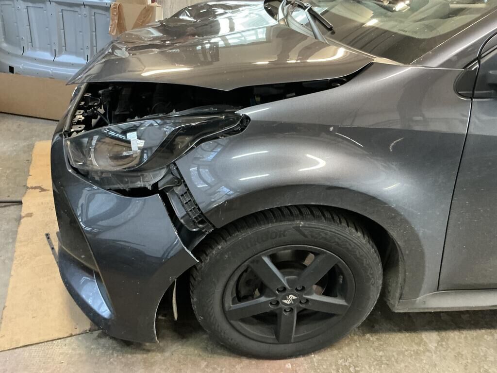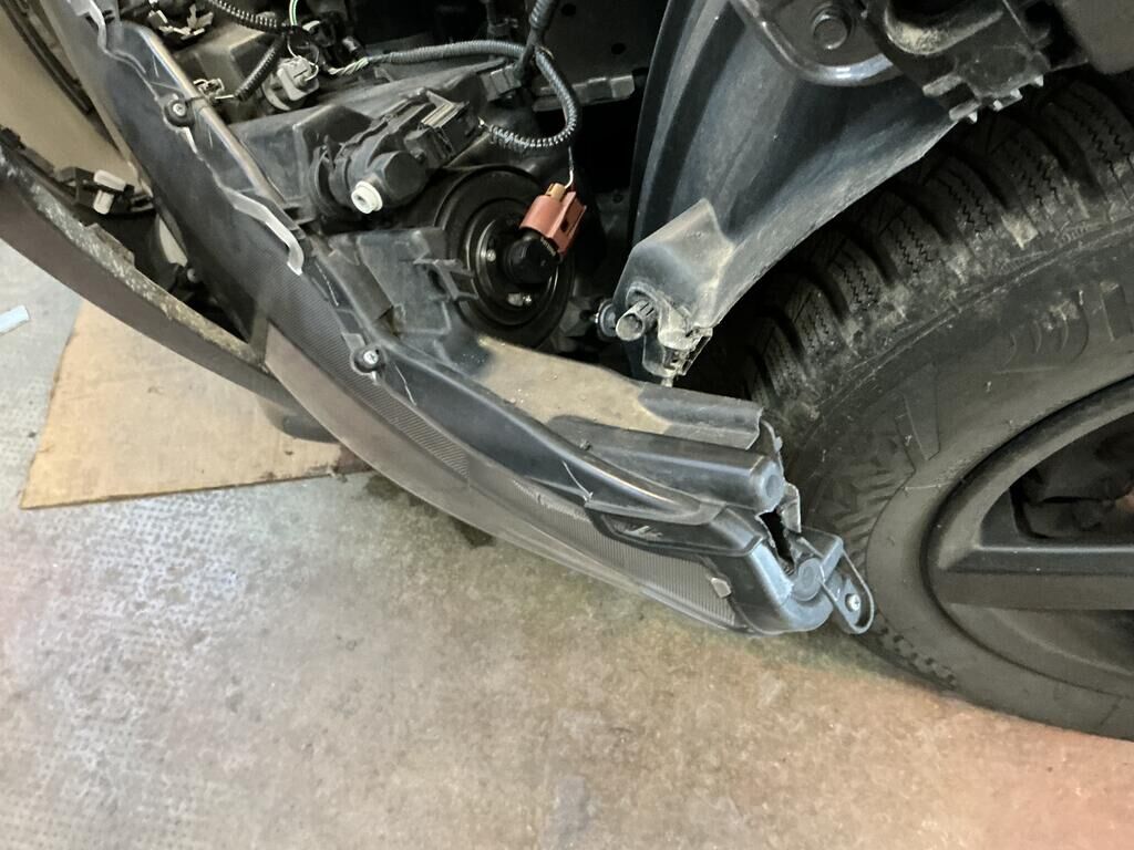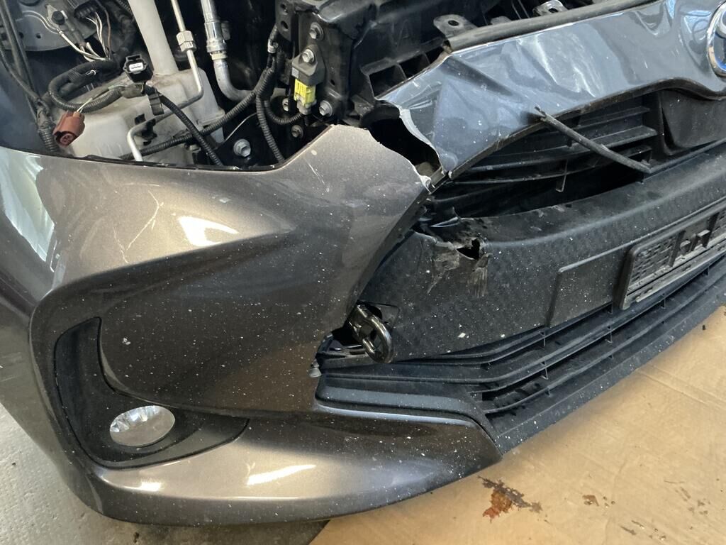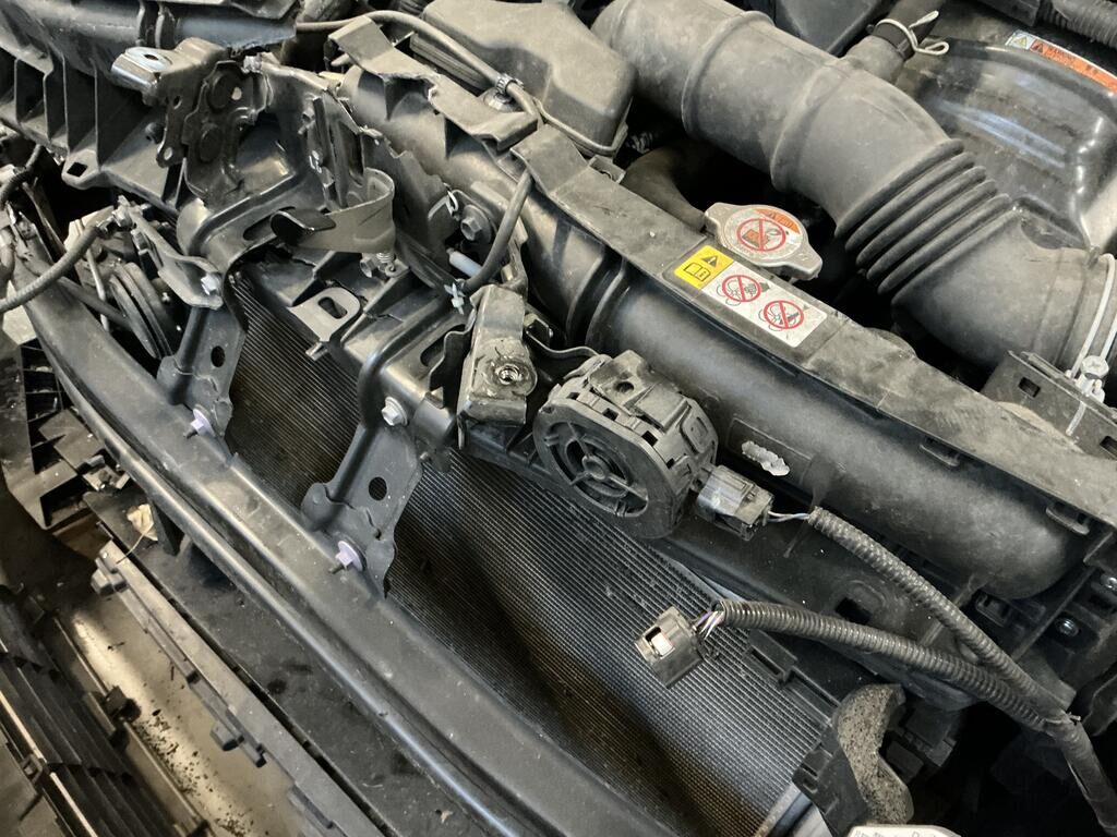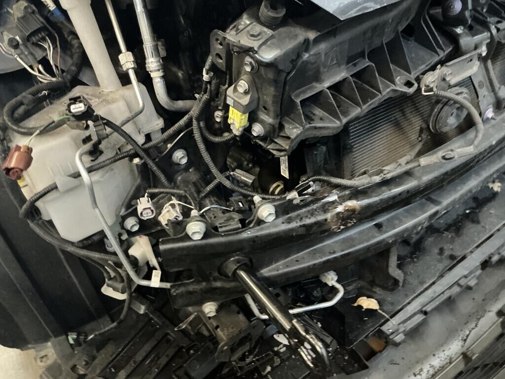 Collision avant: pare-chocs, calandre, supports, guides, traverse, porte-serrure, radiateurs, condenseur, phares, ailes, capots, réservoir, tubulure d’admission, capteur, radar endommagés.