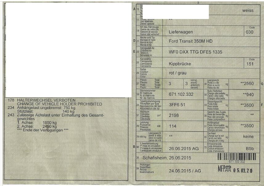 | Tipo | Transit 350 L2 mit Dreiseitenkipper |