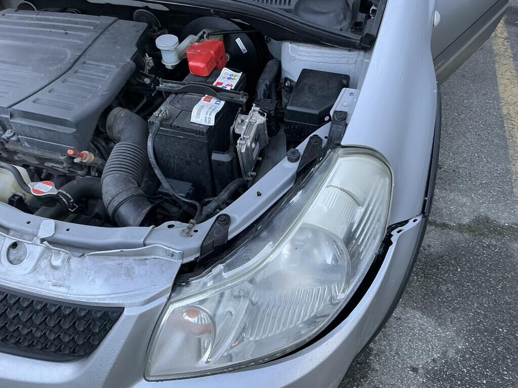 Projecteurs, pare-chocs avant, spoiler de pare-chocs cassés.