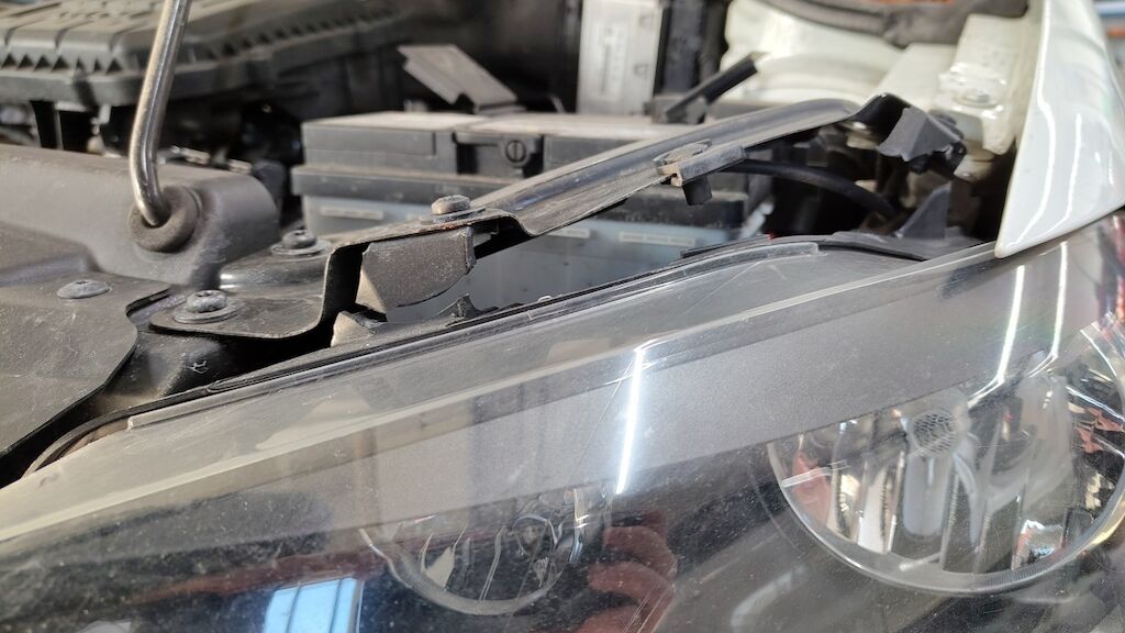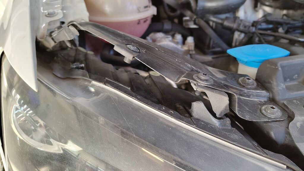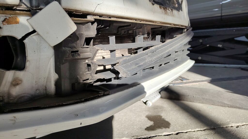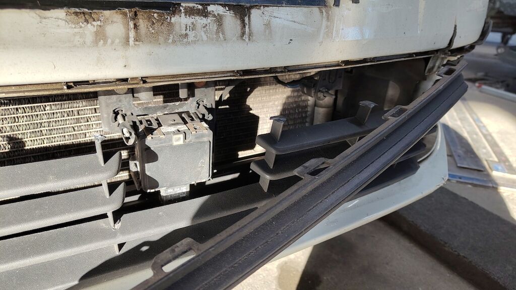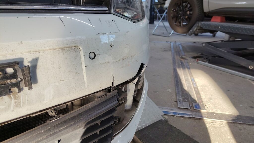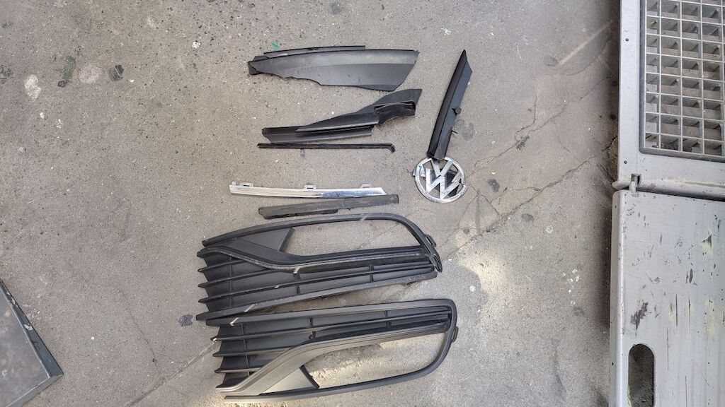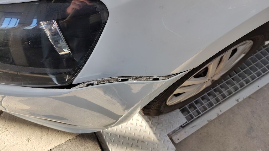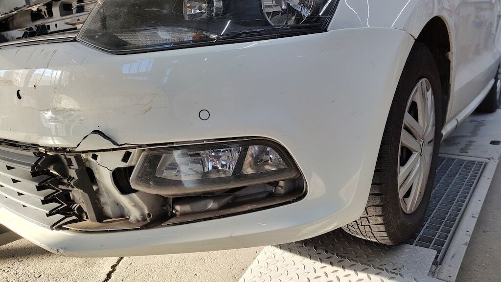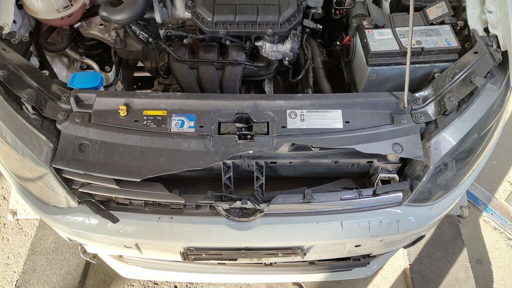 Frontschaden: Motorhaube eingedellt und zerkratzt. Kühlergrill gerissen. Schlossträger gebrochen. Ziergitter links, rechts und mittig gebrochen/zerkratzt. Scheinwerfer links und rechts beschädigt. Haltebleche für Scheinwerfer beschädigt. Stossstange gerissen und zerkratzt, Parksensoren mitte beschädigt. Tagfahrleuchten links und rechts beschädigt. Fehlermeldung: Front Assist.