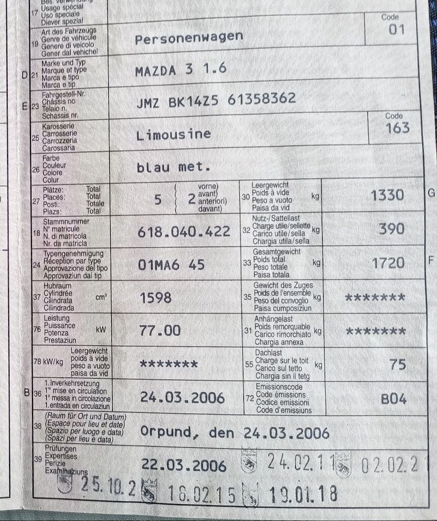 | Pneumatici | 195/65R15 AvG: 8.5 mm AvD: 8.5 mm ArG: 8.5 mm ArD: 8.5 mm |