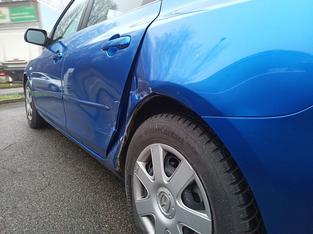 Kollisionsschaden, Aufprall an Fahrzeugseite links mit Beschädigung von Hecktüre, Seitenwand sowie diversen Anbauteilen