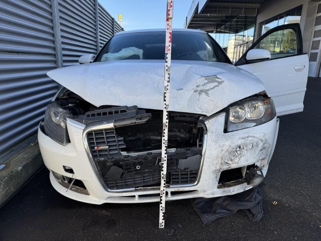 Scheinwerfer gebrochen. Stossstangenhaut vorne deformiert und gerissen. Schlossträger und Aufprallträger sowie sämtliche Kühler und div. Leitungen sowie Motorhaube und Kotflügel vorne mit Aufnahmen und Chassisholmen vorne aufgestossen sowie deformiert und gestaucht. Airbag Fahrer und Beifahrer sowie beide Gurtstraffer ausgelöst. Aufzählungen nicht abschliessend!