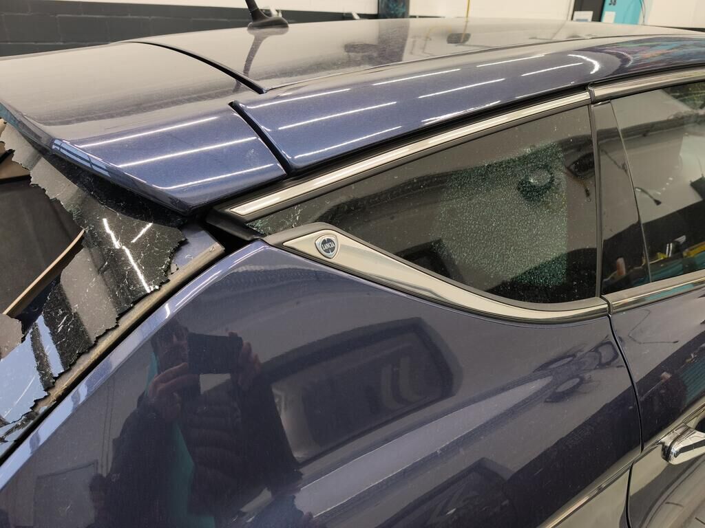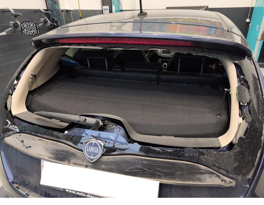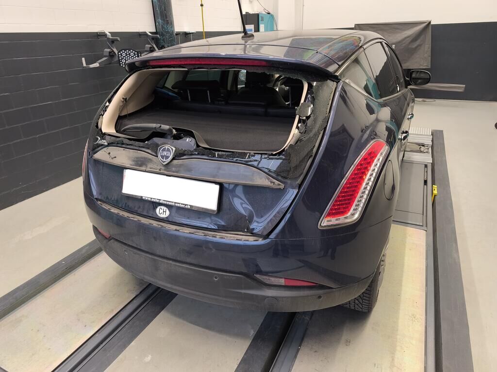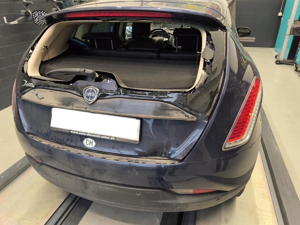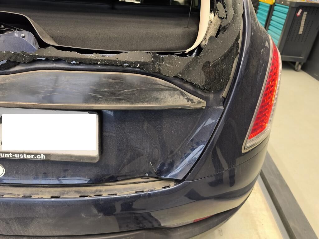 Beschädigt, deformiert oder gebrochen sind die Stossstange hinten, eventuell der Aufprallträger, die Seitenwand hinten rechts, die Heckklappe mit Zierleiste, die Heckscheibe und die Seitenscheeibe hinten rechts.