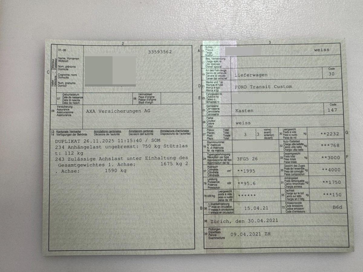 | Fahrzeugausweis | Vorhanden |
