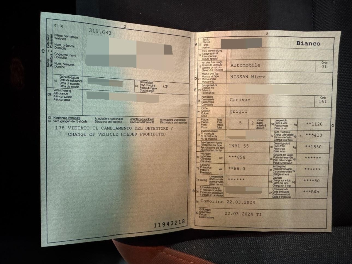 | Fahrzeugausweis | Vorhanden |