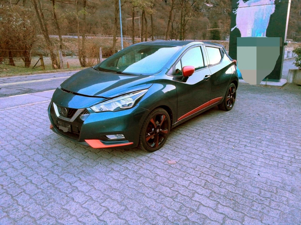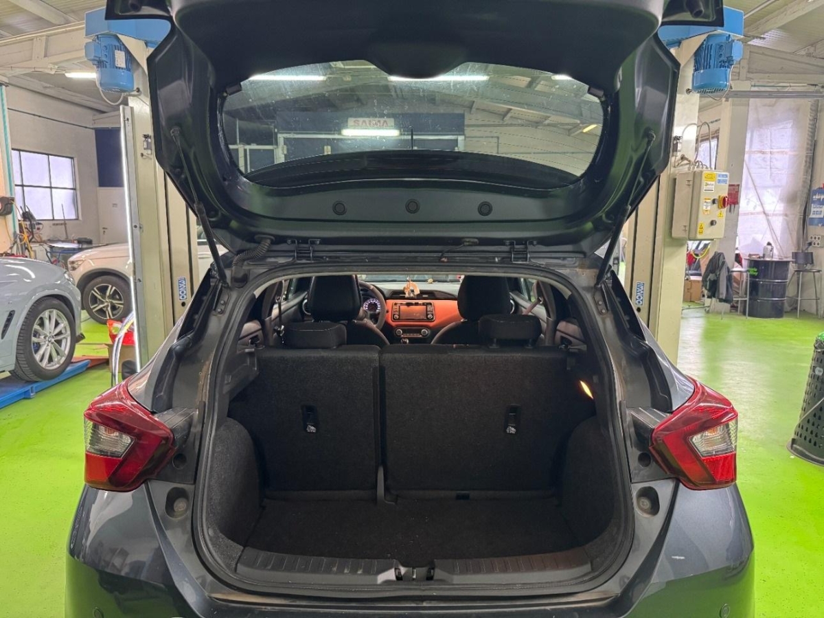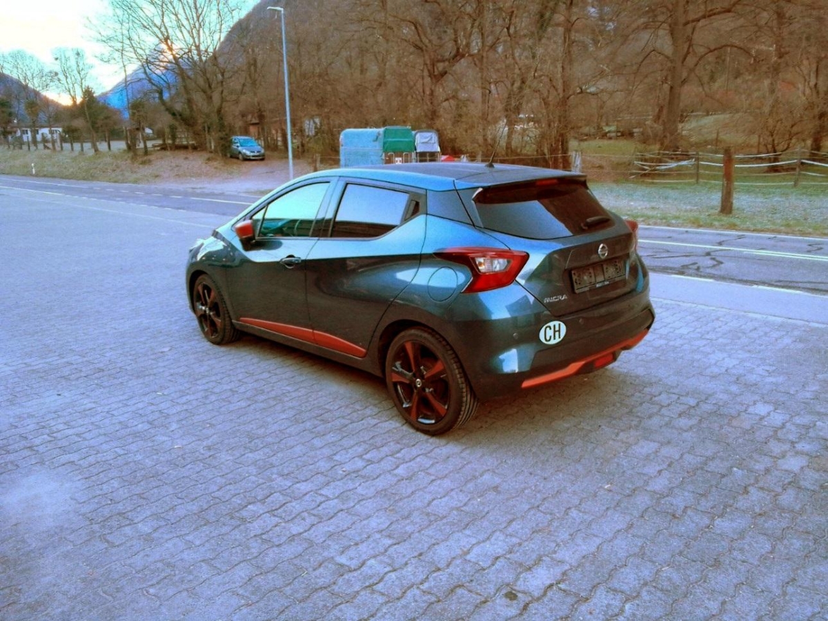 Schalthebelknauf mit Dekoreinlagen, Airbag: Airbag Fahrer und Beifahrer, Gurtstraffer mit Gurtkraftbegrenzer vorne, Cupholder vorne und hinten, Wegfahrsperre elektronisch, Aux-In Anschluss, Rücksitze geteilt abklappbar, Türgriffe aussen in Wagenfarbe, Info-Display, Assist: Warnblinkautomatik bei Vollbremsung, Lenkrad tiefenverstellbar, Elektronisches Stabilitäts-Programm (ESP), Katalysator geregelt, Ambiente Beleuchtung LED, Fahrer-Informationssystem mit Farbdisplay, Drehzahlmesser, Aussenspiegel rechts und links elektrisch verstellbar, Hill-Start Assist (HSA), Frontscheibe Verbundglas, Pollenfilter (Staubfilter), Audio Paket: Audio-System mit Bluetooth, USB-Schnittstelle und 2 Lautsprechern, 2 Hochtonlautsprecher (Tweeter), Scheibenwischer vorne mit Intervall, Spurverlassenswarnung, Gangempfehlung, Assist: Tempomat mit Geschwindigkeitsbegrenzer, Make up-Spiegel links, Kopfstützen hinten, Regensensor für Scheibenwischer vorne, ABS, EBD elektronische Bremskraftverteilung, Touchscreen, Sportlederlenkrad mit Dekoreinlagen, Drittes Bremslicht, Kniepolsterung an der Mittelkonsole, Lenkrad höhenverstellbar, Multifunktionslenkrad, Licht: LED-Tagfahrlicht, Heckscheibenheizung, Ablagen in den Türen, Reifenreparatur-Set mit Kompressor, Zentralverriegelung mit Fernbedienung, TPMS Reifendrucküberwachungssystem, NissanConnect Navigationssystem mit 7′ Farbdisplay und Touch inkl. TMC Radio,CD,MP3,AUX,USB,IPod,4 Lautsprecher Bluetooth,Google,MapCare,, Halogenscheinwerfer, Aussentemperaturanzeige, Sitze: Fahrersitz höhenverstellbar, Airbag: Airbag Beifahrer deaktivierbar, Licht: Fahrlichtautomatik, Nebelschlussleuchte, Heckscheibenwischer, zweistufig, Aussenspiegel rechts und links beheizt, Stopp-/Start-System, Seitenairbags vorne und Kopfairbags vorne und hinten, 3-Punkt-Sicherheitsgurte auf allen Plätzen, Aussenspiegel in Wagenfarbe, Notbremsassistent, Staufach vorne in der Mittelkonsole, 5-Gang-Getriebe, Sitze: ISOFIX-Befestigungspunkte für Kindersitz an den äusseren Rücksitzen, Make up-Spiegel rechts, Stoff-Ausstattung, Design Paket: verdunkelte Scheiben ab B-Säule, Nebelscheinwerfer vorne, 4 Leichtmetallfelgen 16J mit Pneu, Lackierung: Uni-Lackierung, Steckdose 12V, Sportlenkrad, Elektrische Fensterheber vorne, 2 Türlautsprecher vorne, Nebelscheinwerfer, Comfort Paket: Klimaautomatik inkl. Pollenfilter, INTELLIGENT KEY mit Start/ Stop Knopf, Blinker in Aussenspiegel, Dachspoiler, Aussenspiegel elektrisch einklappbar, Aktive Fahrkomfortregelung, Getönte Scheiben