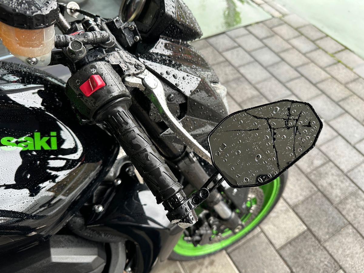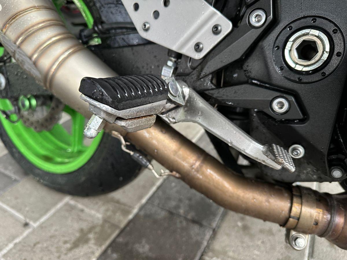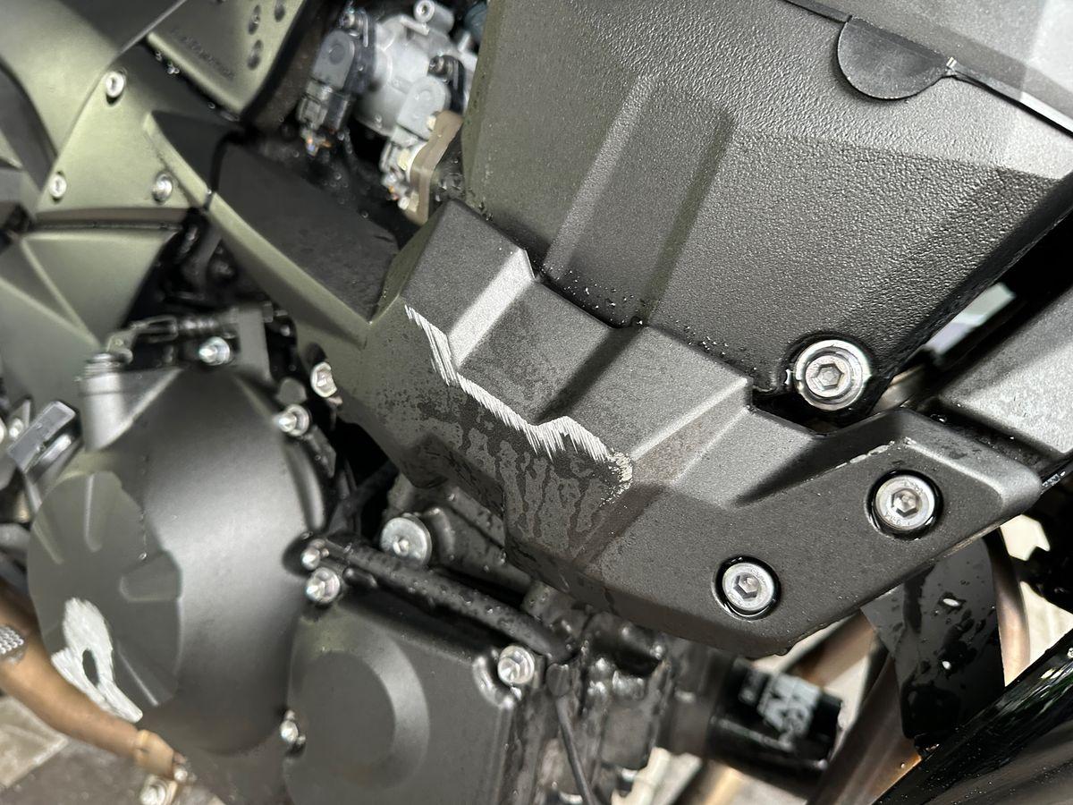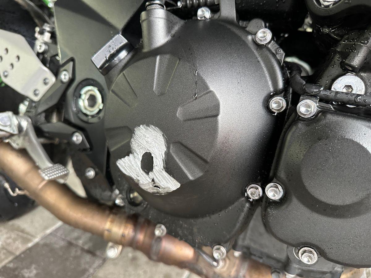 Auspufftopf, Aussenspiegel rechts, Diverse Anbauteile, Fussraster rechts, Griff rechts, Kupplungsgehäuse, Lenkanschlag, Lenker, Motor, Seite rechts, Verschalungen rechts
