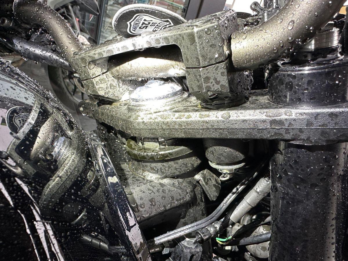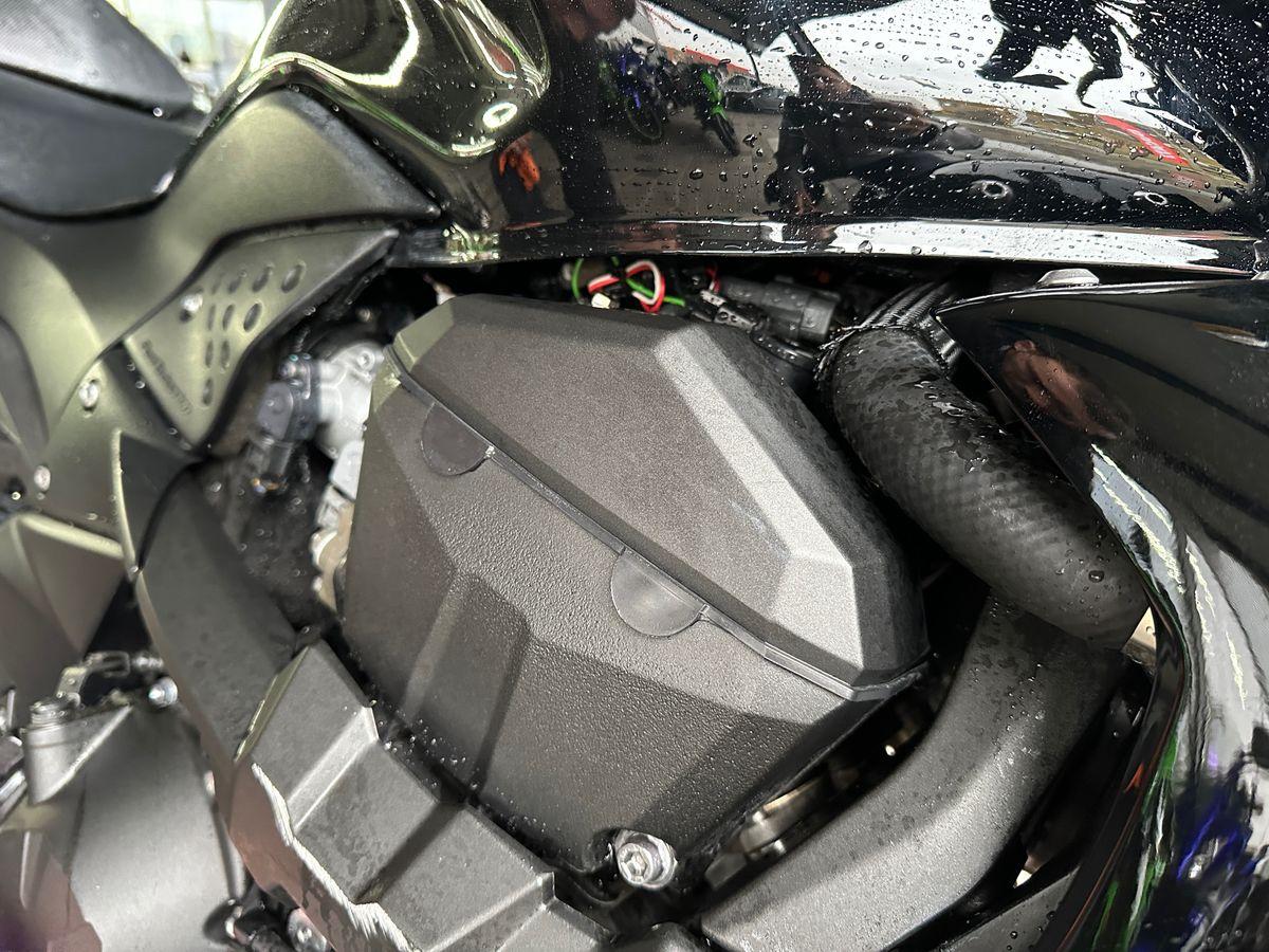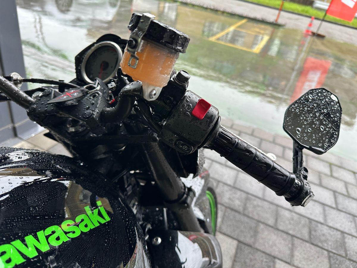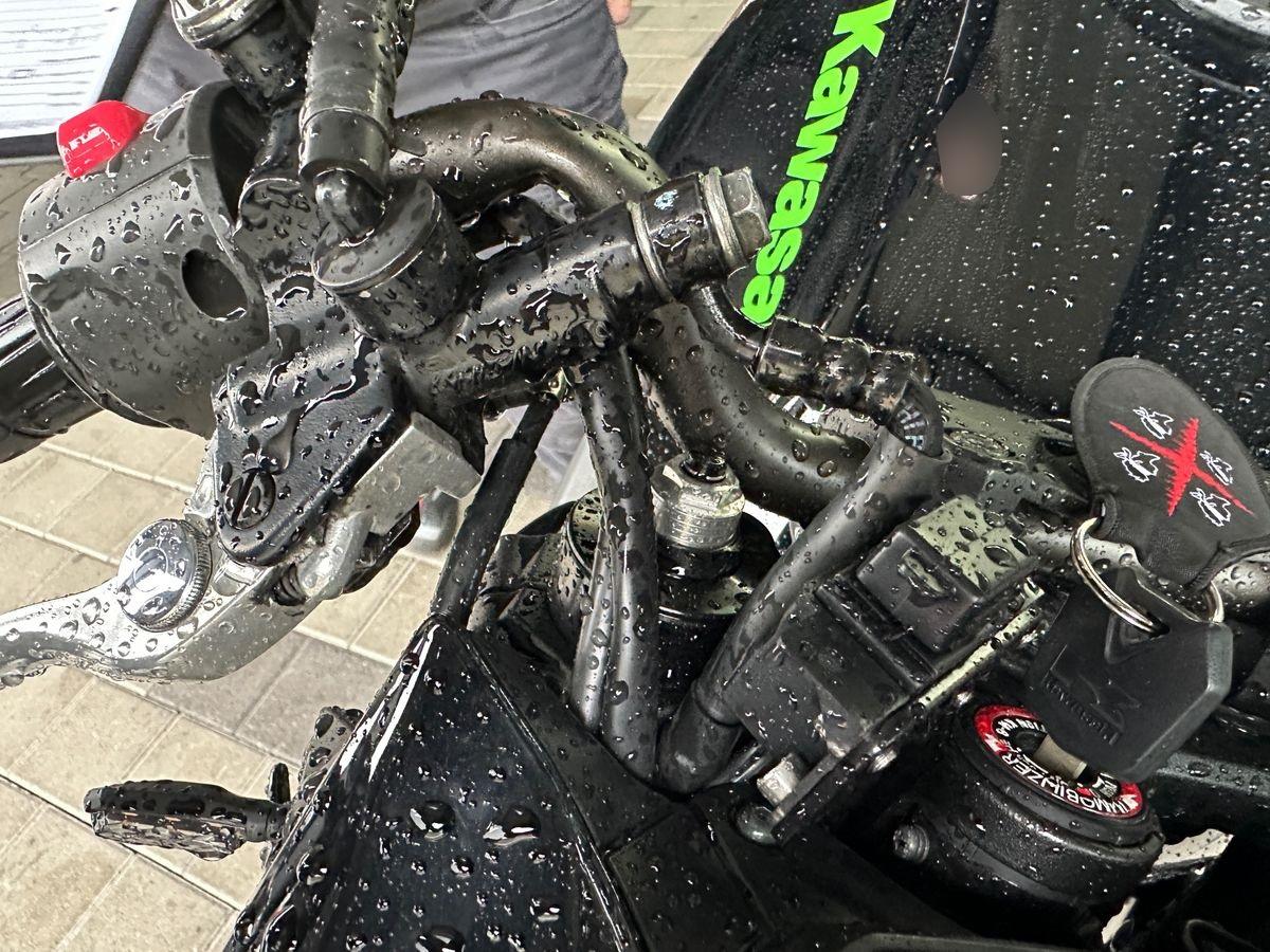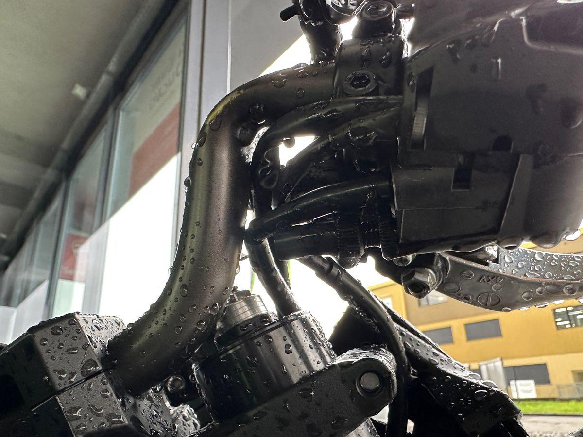 Auspufftopf, Aussenspiegel rechts, Diverse Anbauteile, Fussraster rechts, Griff rechts, Kupplungsgehäuse, Lenkanschlag, Lenker, Motor, Seite rechts, Verschalungen rechts
