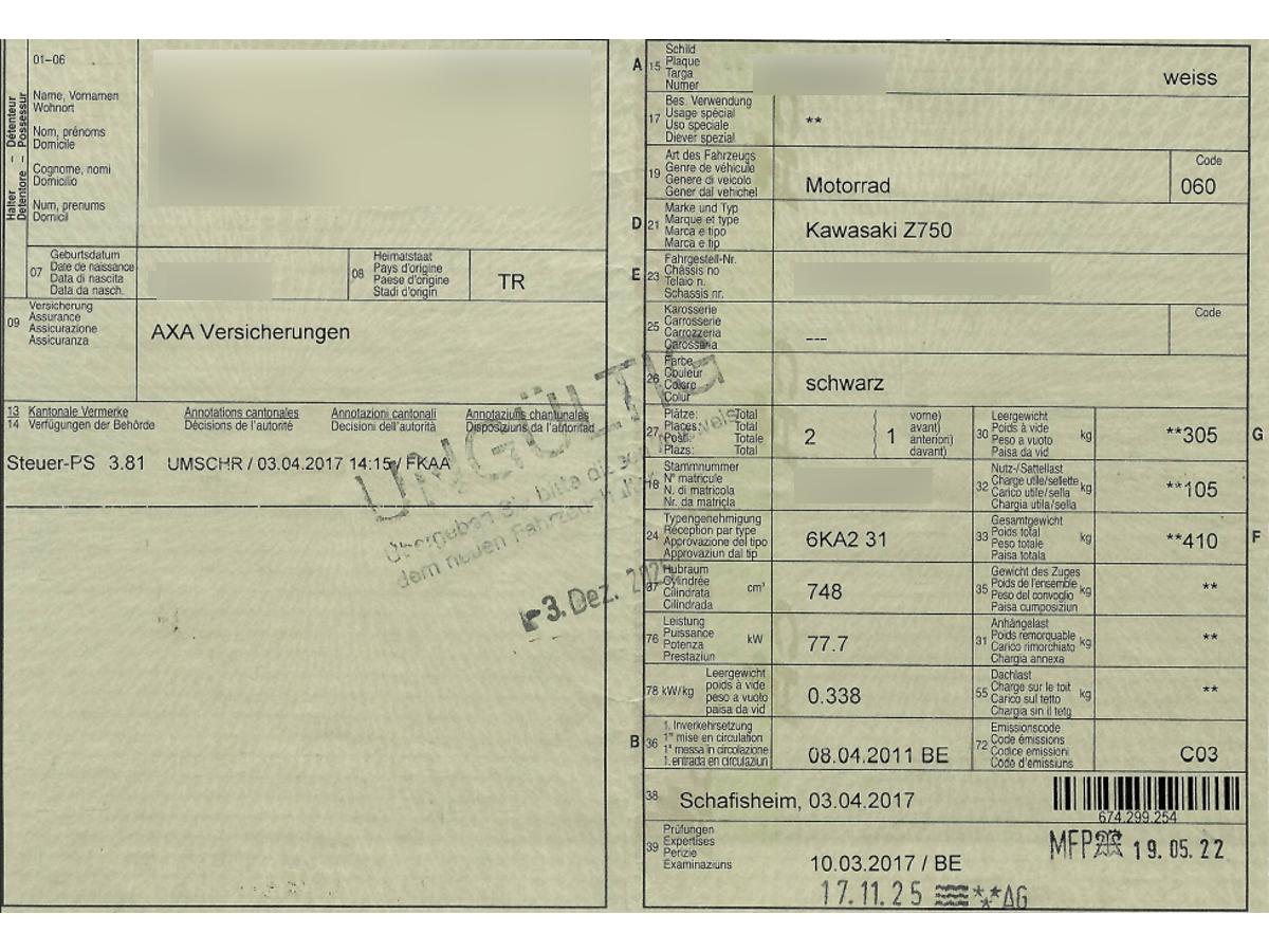 | Fahrzeugausweis | Vorhanden |