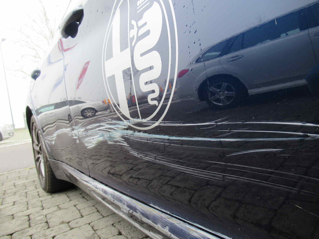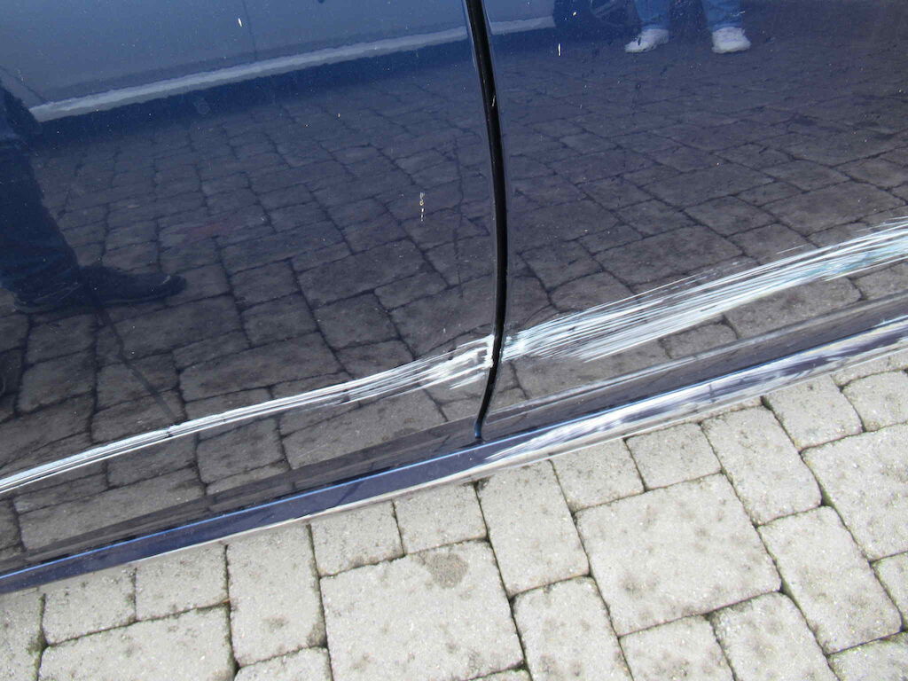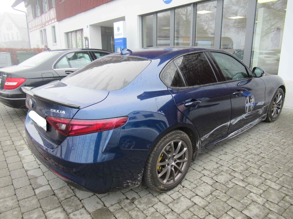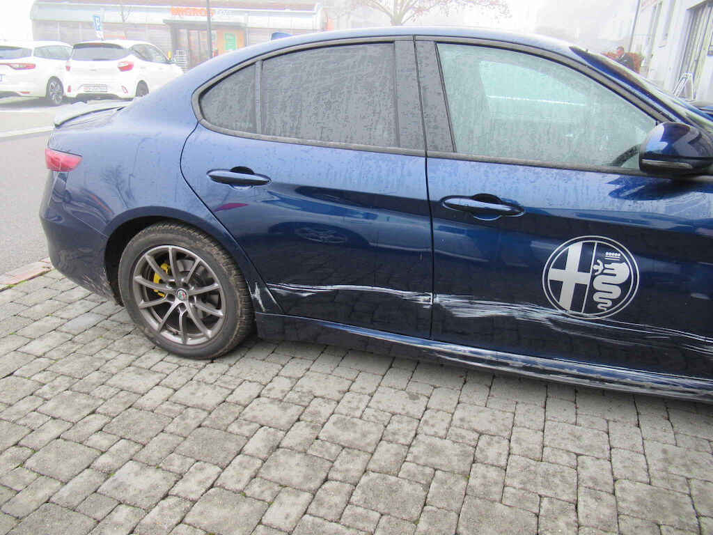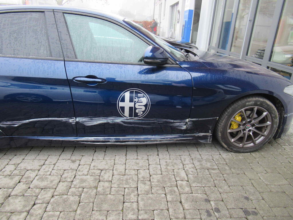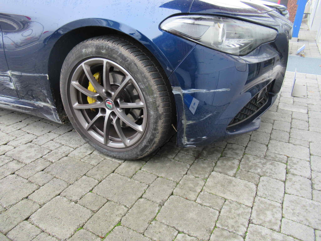 Stosstange vorne, Kotflügel, Türen, Schweller, Felge hinten sowie Lenkgeometrie