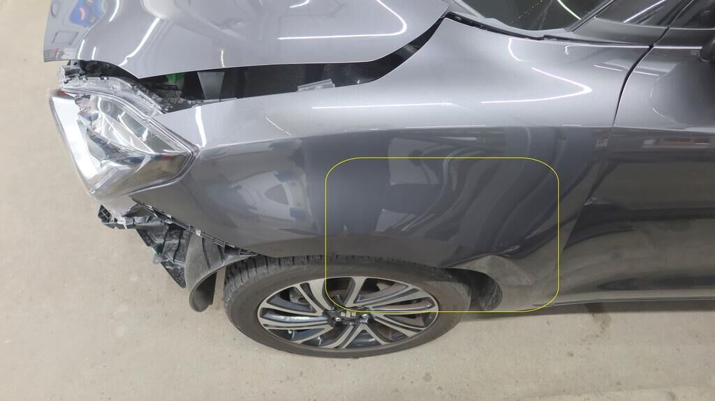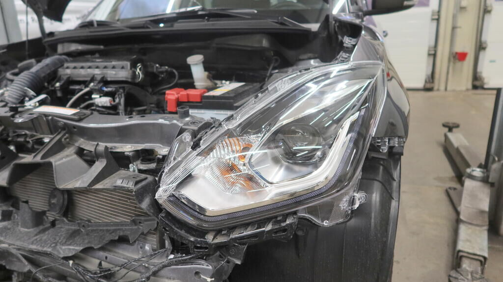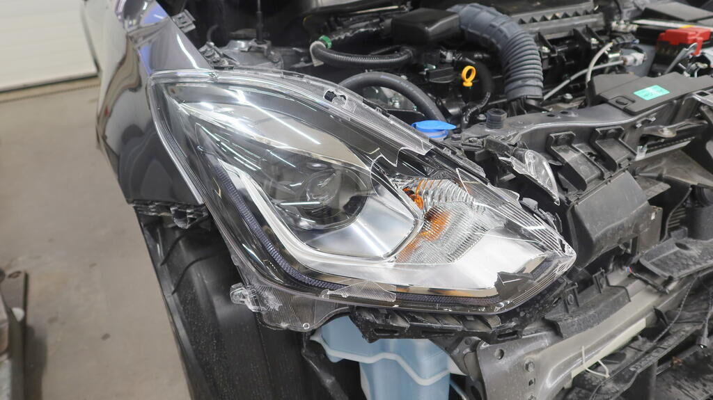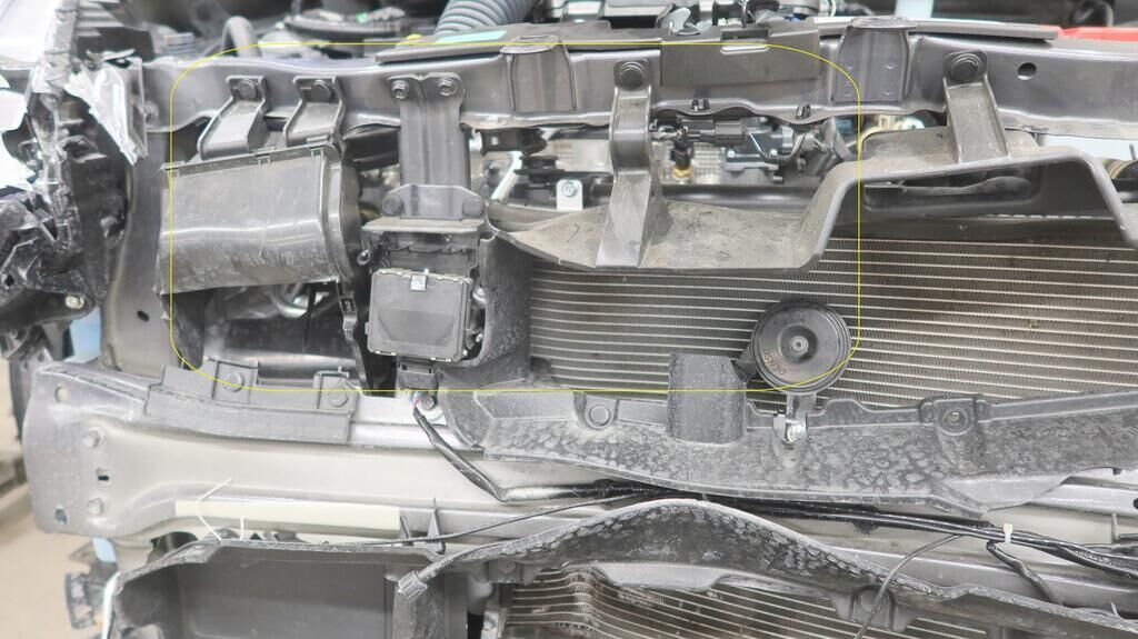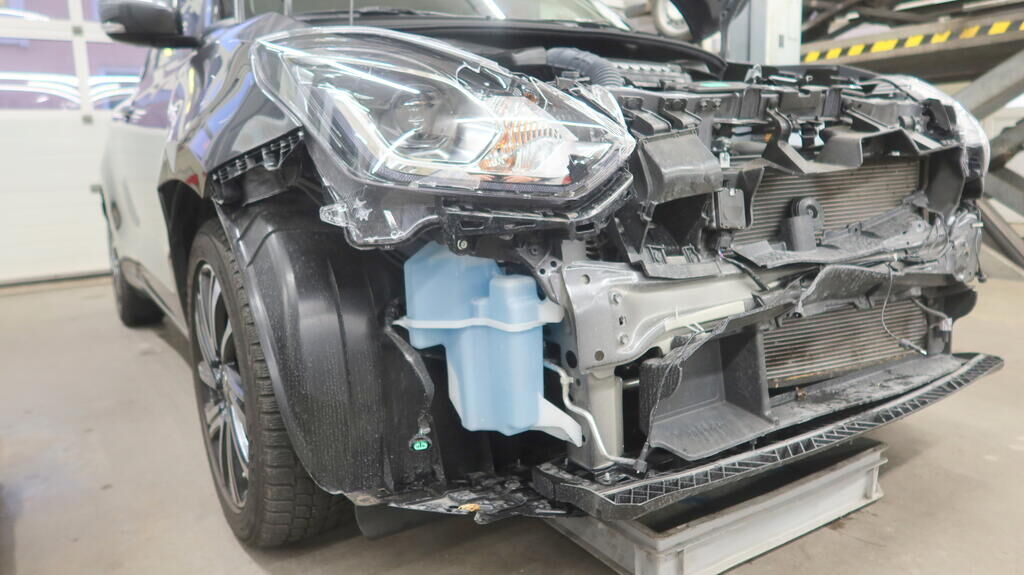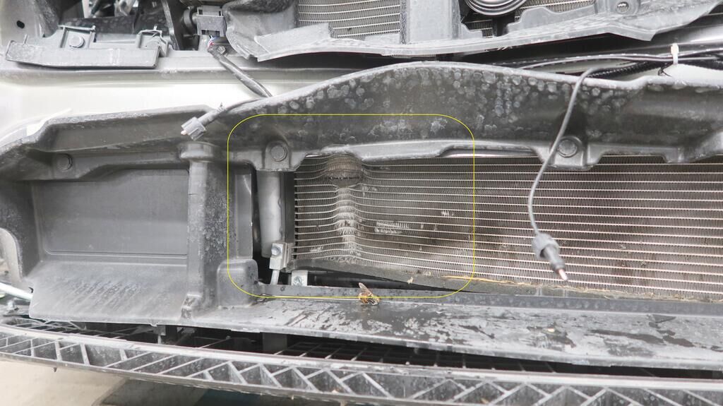 Stossstangenabdeckung vorne gerissen, Kühlergrill gebrochen, Scheinwerfer links und rechts gebrochen, Querträger eingedrückt, Schlossträger deformiert, Kühlerpaket verformt, Kühlerlüfter beschädigt, Diverse Abdeckungen an der Front gerissen und beschädigt, Kabelstrang beschädigt, Radarsensor gebrochen, PDC- Anlage (Zubehör) beschädigt, Motorhaube verformt und gestaucht, Kotflügel rechts und links gestaucht.