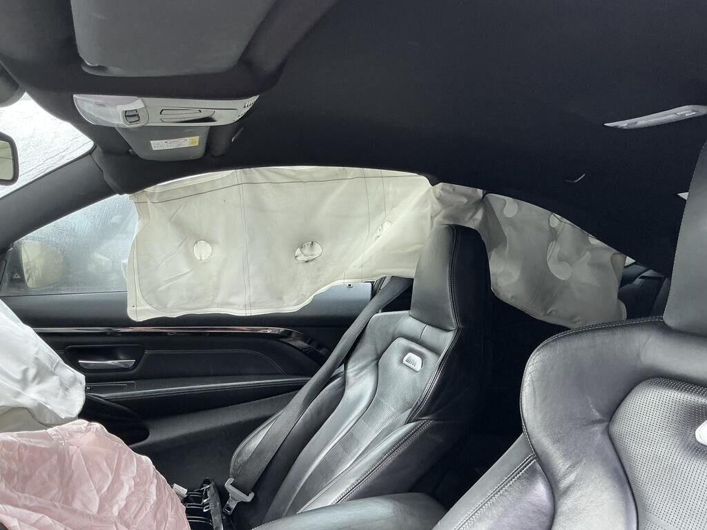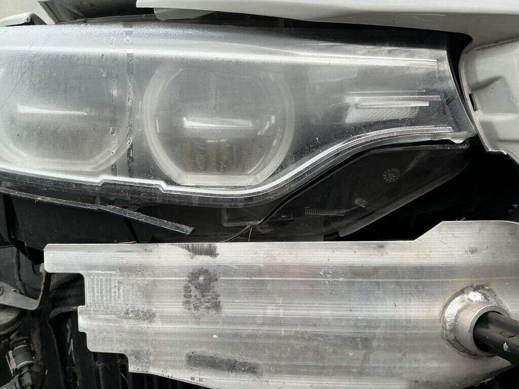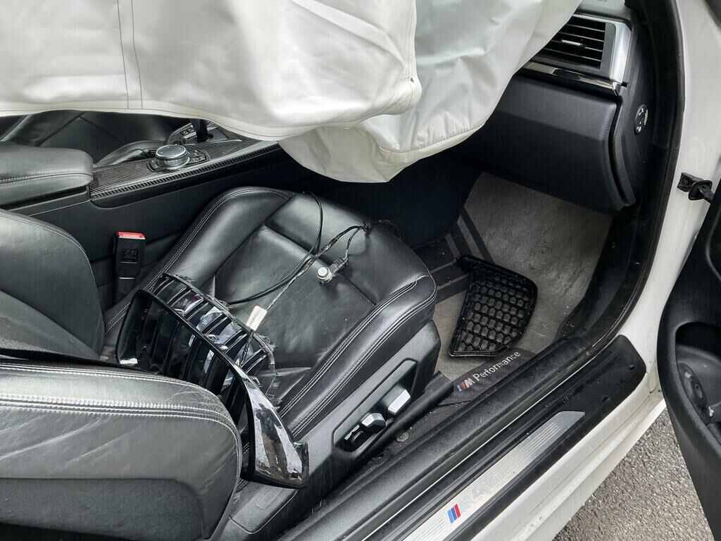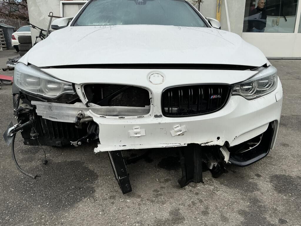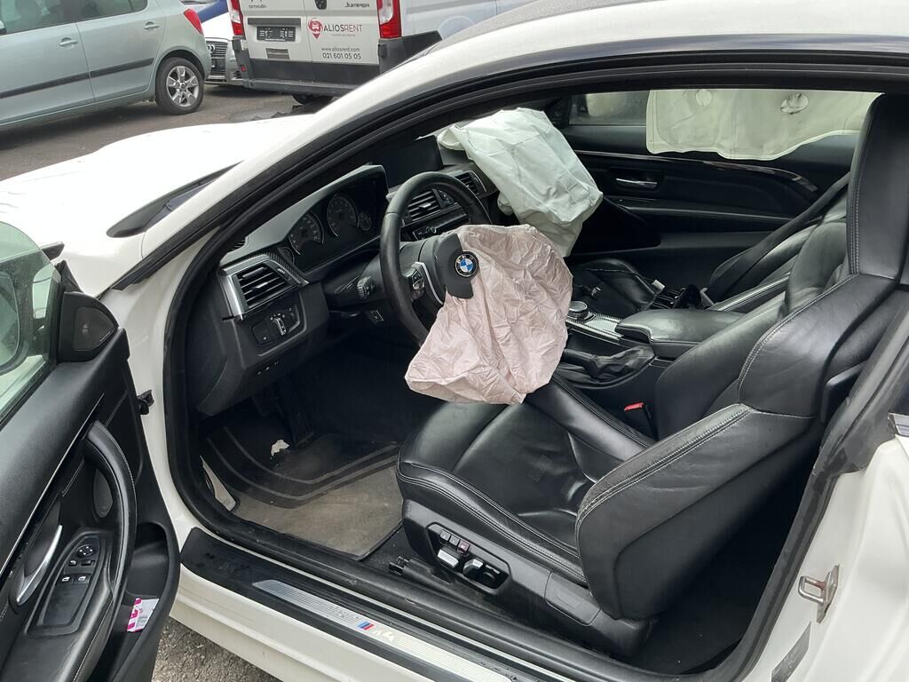 Collision avant droit inférieur: pare-chocs, spoiler, grilles. calandres, phare, capteurs, traverse, ailes, porte-serrure, radiateurs, condenseur, train roulant, suspension, direction, pare-brise, airbags, prétensionneurs de ceinture endommagés.