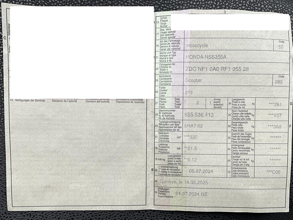 | Tipo veicolo / Costruzione / Porte | Motoveicolo / Scooter / 5 |