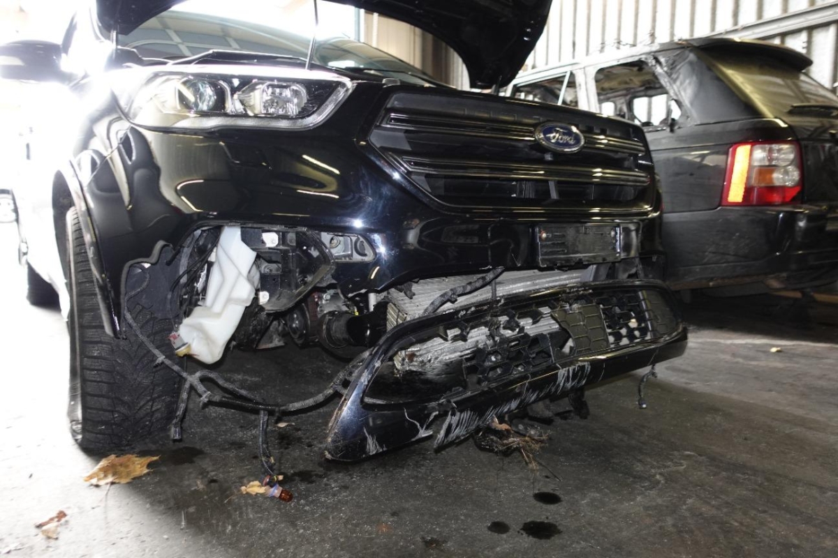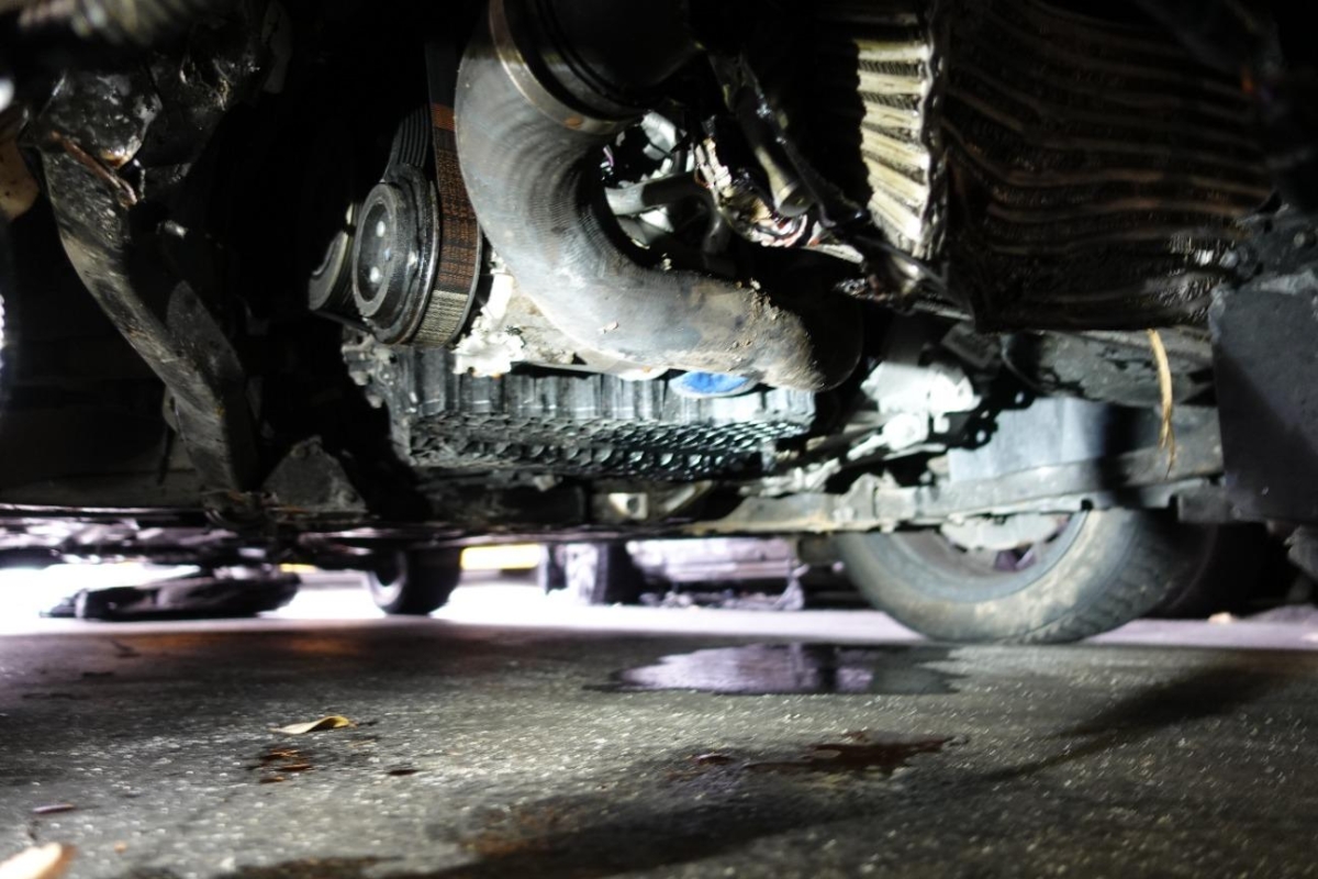 Achsträger, Airbag ausgelöst, Auspuffanlage, Federbein vorne rechts, Front, Getriebe, Hinterachse, Kotflügel rechts, Kühler, Kühlgitter, Lenkung, Motor, Rad vorne rechts, Scheinwerfer rechts, Schweller links, Schweller rechts, Stossstange hinten, Stosstange vorne, Ölwanne
