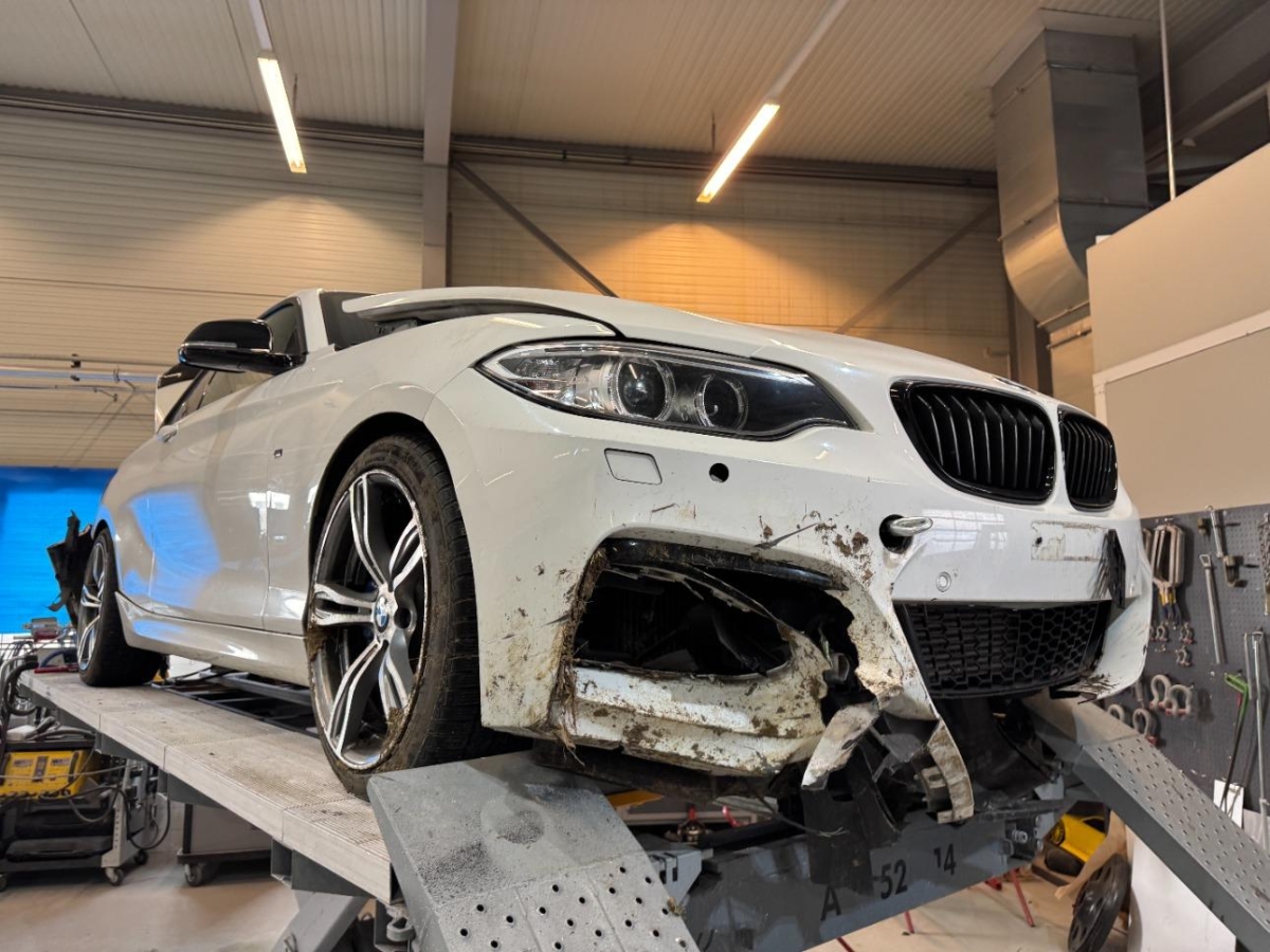 Achsträger, Antrieb, Auspuffanlage, Front, Heck rechts, Interieur verschmutzt, Kotflügel rechts, Kühler, Ladeluftkühler, Lenkung, Motorhaube, Motorträger, Rad hinten rechts, Rad vorne links, Rad vorne rechts, Radaufhängung vorne links, Radaufhängung vorne rechts, Rücklicht rechts, Schlossträger, Schweller rechts, Seitenwand rechts, Stossstange hinten, Stosstange vorne, Türe vorne rechts, Vorderachse, Wagenboden