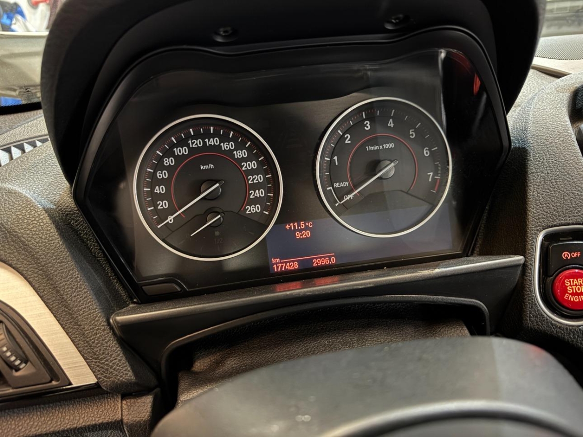 Make up-Spiegel links, ISOFIX Kindersitzvorrichtung, BMW Mobility System, Allradantrieb permanent, Wärmeschutzverglasung, Akzentleisten Estoril Blau matt, Abschliessbare Radschrauben, Start-/Stop-Knopf, Sitze: Sportsitze vorne, Durchladesystem, Elektrische Lenkung (EPS), Elektrische Fensterheber vorne, Ausführung 4 Sitzplätze (2+2), Make up-Spiegel rechts, Antiblockiersystem (ABS), Blinker in Aussenspiegel, 8-Stufen-Automat sequentiell, AUX-Anschluss, Bordcomputer, Zusätzliche 12V Steckdosen, Radio BMW Professional, Lenkrad: Lenkrad längs- und höhenverstellbar, Gurtkontrolle, Cupholder vorne, Shadow Line glänzend, TeleService, M-Lederlenkrad, Zentralverriegelung mit Fernbedienung, Airbag: Seitenairbag für Fahrer und Beifahrer, Veloursfussmatten vorne und hinten, Steckdose 12V, Lenkrad: Multifunktionslenkrad, Katalysator geregelt, M Sportbremsen, Aerodynamikpaket, Stoff ”Hexagon” /Alcantara, Window-Kopfairbags, BMW Individual Dachhimmel Anthrazit, Airbag: Airbag Fahrer und Beifahrer, DAB+ (Digital Audio Broadcasting), Interieurleisten Aluminium Hexagon, Airbag: Airbag Beifahrer deaktivierbar, Fahrerlebnisschalter inkl. ECO PRO, Lackierung: Uni-Lackierung, Bremsenergie-Rückgewinnung, Armauflage vorne, verschiebbar, Intelligenter Notruf, Assist: Dynamische Traktionskontrolle (DTC), Klimatisierungsautomatik, Dynamische Stabilitätskontrolle (DSC), M Leichtmetallfelgen im Doppelspeichen- styling 436 M, 18 J mit Pneus, Auto Start-/Stop-Anlage, Reifenkontrollanzeige