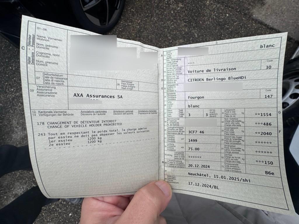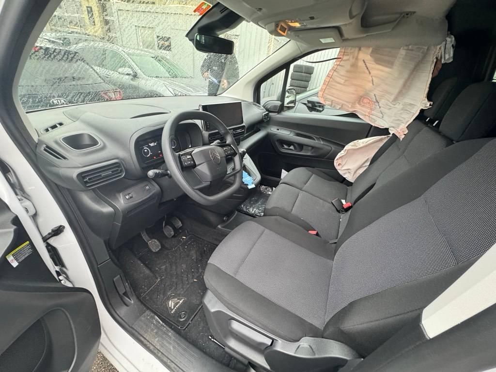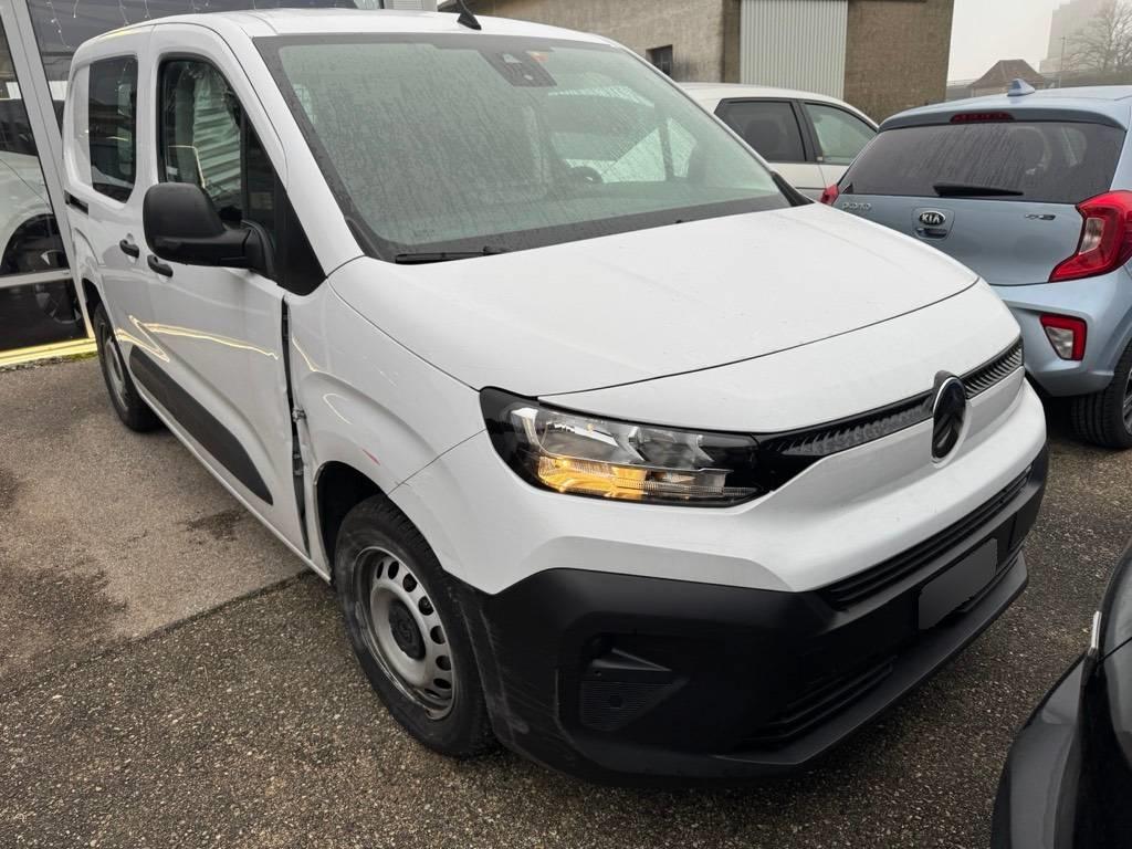 Zentralverriegelung aller Türen Automatische Entriegelung im Falle eines Stosses, Türen: Hecktüren 60/40 geteilt, 180° Öffnungswinkel, verblecht, Getriebe: 6-Gang-Schaltgetriebe, Klima: Manuelle Klimaanlage, Lackierung: Uni-Lackierung, Satz von 2 PLIPS-Schlüsseln, Räder: Reifenreparatur-Set, Garantie: 5 Jahre Korrosionsschutzgarantie, Lackierter Boden ohne Schutz, Türen: Seitliche Schiebetür rechts verblecht, Elektrische Fensterheber vorne, Licht: Automatisches Einschalten der Scheinwerfer, Fixierte Trennwand in voller Höhe mit Kleiderhaken, Servolenkung, 6 universelle Zurrösen im Laderaumboden + Beleuchtung (15W), ABS, AFU, ASR, ESP und Berganfahrhilfe, Airbag: Kopfairbags vorne, Assist: Spurhalteassistent, Assist: Einparkhilfe hinten, Assist: Müdigkeitserkennung, Assist: Geschwindigkeitsbegrenzer, Assist: Verkehrszeichenerkennung (e-TSR), Assist: Geschwindigkeitsregler und Geschwindigkeitsbegrenzer, Assist: Autonomes Notbremssystem, Seitenschutzleisten schwarz getönt, Handschuhfach oben geschlossen und gekühlt – Handschuhfach unten offen, Aussenspiegelgehäuse aus schwarzem Kunststoff, Ablagefach über der Windschutzscheibe, Garantie: 3 Jahre oder 100’000 km (ab 1. Inverkehrssetzung), Licht: Automatische Umschaltung des Fernlichts, Magic Wash Premium System, Medien: Citroën Connect Box, Medien: 2 USB-Anschlüsse Typ C (nur zum Laden), Medien: Smartphone-Station, Radio-App mit Audio-Streaming (2 LP), Medien: Bluetooth-Freisprecheinrichtung, Untere Stoßfänger in Schwarz, Türen: Flügeltüren, hinten, 60/40 (Öffnung bis zu 180 °), Räder: Indirekter Reifendrucksensor, Räder: Graue Stahlfelgen, 15 Zoll, mit Radkappen DEMI-STYLE 195/65R15, Außenspiegel rechts und links beheizbar und elektrisch verstellbar, Sitze: 2 Sitze in Reihe 1: Fester Beifahrersitz + einfacher Beifahrersitz mit verstellbarer Neigung, Sitze: Fahrersitz mit Längenverstellung und neigbarer Rückenlehne, Stoff: Stoff Curitiba Dunkelgrau, Kofferraumverriegelung – Blinkknopf, Lenkrad: Lenkradbedienelemente, Lenkrad: Lenkrad in Höhe und Tiefe verstellbar