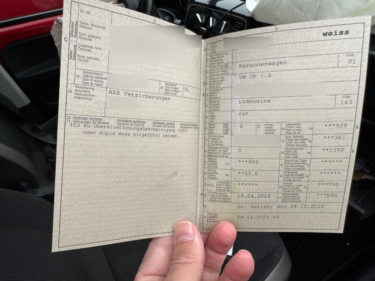 Tagfahrlicht, Ablagen in den Türen, Handschuhfach, Heckscheiben-Wisch-/Waschanlage mit, Innenspiegel abblendbar, Assist: Berganfahrassistent, Sitze: Rücksitzlehne geteilt abklappbar, Räder: Abschliessbare Radschrauben, Schaltknauf und Handbremshebel in Leder, Elektrische Fensterheber vorne, Komfortblinker, Radiosystem RCD 215 mit MP3, Aschenbecher und Zigarettenanzünder, Scheibenwischer vorne mit Intervall, Airbag: Airbag Beifahrer deaktivierbar, Gepäckraumunterteilung, Servolenkung, Warnblinkautomatik bei Vollbremsung, Lackierung: Uni-Lackierung, Licht: Nebelschlussleuchte, Gurtkontrolle, Cupholder, Wagenheber, Innenlicht-Abschaltverzögerung, Airbag: Window-Kopfairbags, Zentralverriegelung mit Fernbedienung, Airbag: Airbag Fahrer und Beifahrer, Radiovorbereitung und Entstörung, Katalysator geregelt, Licht: Drittes Bremslicht, Klima: Pollenfilter (Staubfilter), Drehzahlmesser, 4 Leichtmetallräder (spoke) 5.5x15J, Aussenspiegel und Türgriffe in Wagenfarbe, Airbag: Seitenairbags, Klima: Klimaanlage, Sitze: Fahrersitz höhenverstellbar, Vordersitze beheizbar, City Safety Automatische Notbremsung bis 30 Km/h, Kopfstützen hinten abklappbar, Tageskilometerzähler, Elektronisches Stabilitäts-Programm ESP, Make up-Spiegel rechts, 3-Punkt-Sicherheitsgurte auf allen Plätzen, Wärmeschutzverglasung, Laderaumabdeckung, Antriebsschlupfregelung (ASR), 3 Speichen-Lederlenkrad, Mittelkonsole, Stossstangen in Wagenfarbe, Sonnenblende rechts, Antiblockiersystem (ABS), Polster: Stoff-Ausstattung, Tire Mobility System, Aussenspiegel rechts und links beheizbar und elektrisch verstellbar, ISOFIX Kindersitzvorrichtung, Nebelscheinwerfer, Heckscheibenheizung, Bremsassistent (BAS), Sonnenblende links, Gurtstraffer vorne, 5-Gang-Getriebe, Wegfahrsperre elektronisch