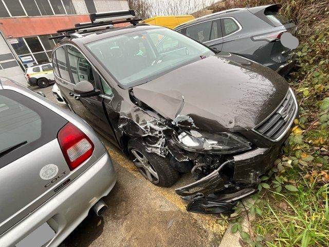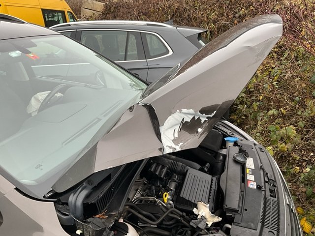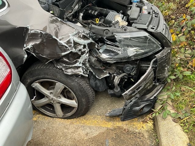 Front Radhaus vorne rechts eingedrückt / gestaucht. Längsträger vorne rechts gestaucht. |