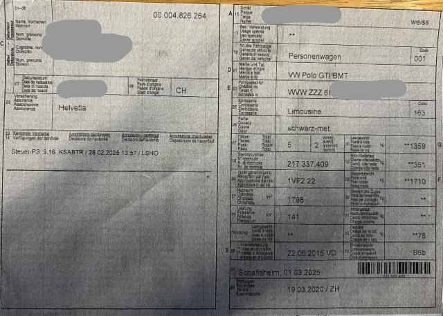 Vor Ort waren: 1 Schlüssel, Fahrzeugausweis, Borddokumente. Motor und Getriebe wurde nicht geprüft