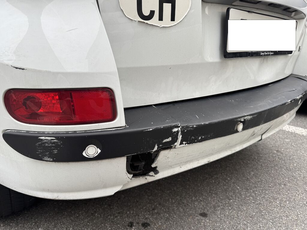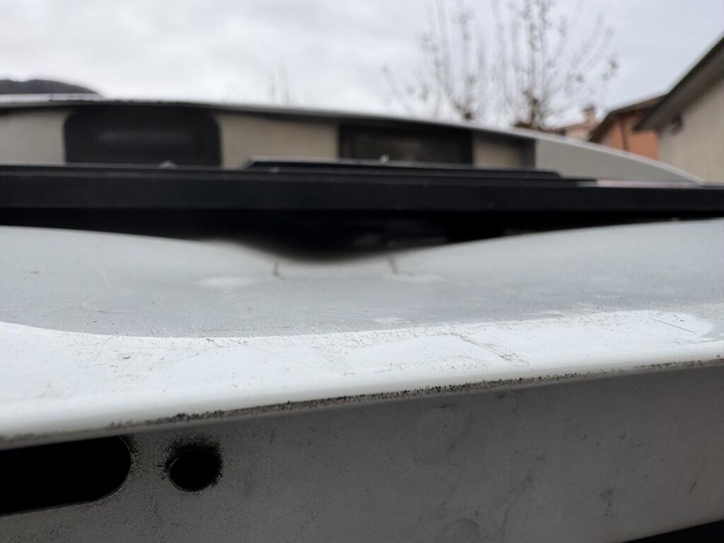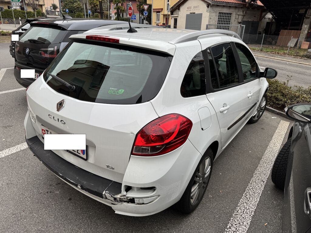 Urto parte posteriore: portellone, paraurti, traversa e dorsale danneggiati. Fondo bagagliaio a rischio.