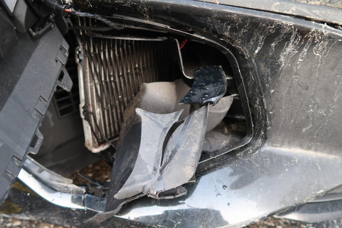 Front links, Front rechts, Kotflügel links, Kotflügel rechts, Kühler, Kühlgitter, Motorhaube, Rad hinten rechts, Rad vorne rechts, Radaufhängung hinten rechts, Radaufhängung vorne rechts, Scheinwerfer links, Scheinwerfer rechts, Schlossträger, Seite rechts, Seitenwand rechts, Stossstange hinten, Türe hinten rechts