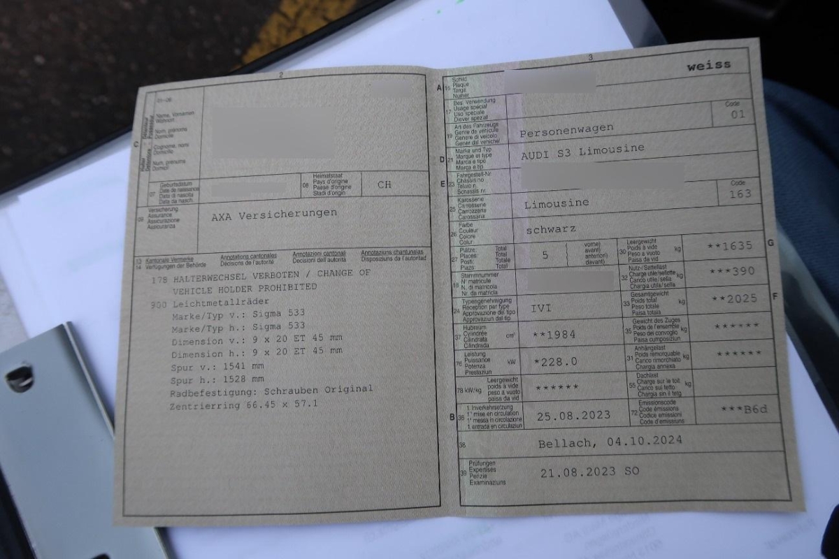 | Fahrzeugausweis | Vorhanden |