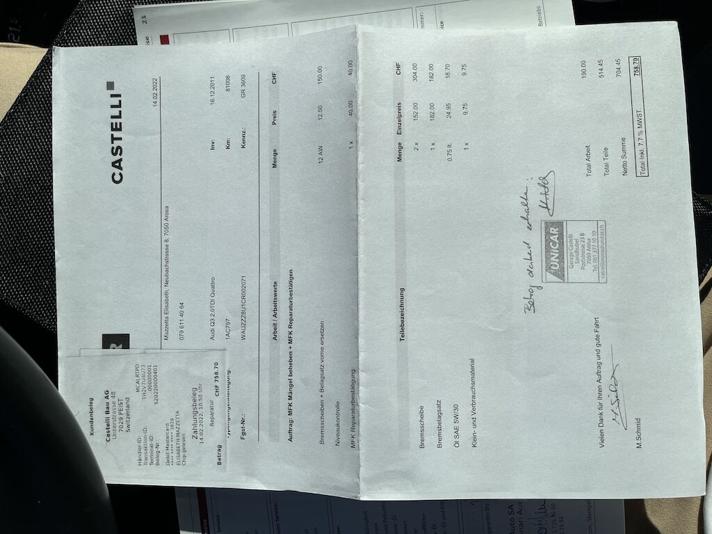 | Costi riparazione | 0.00 CHF | |