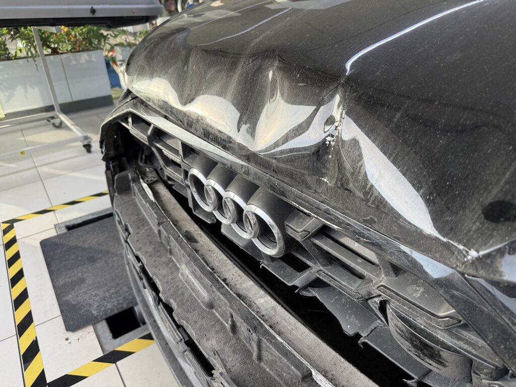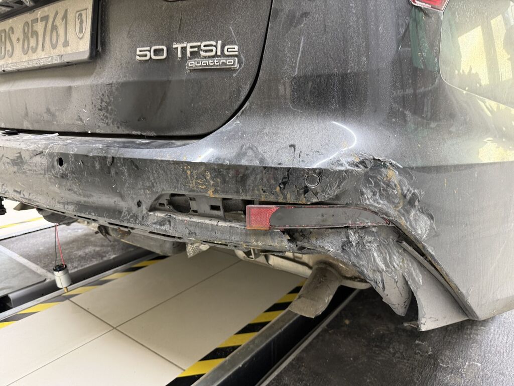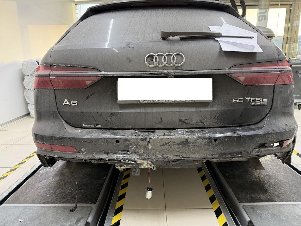 Heckschaden:Heckdeckel, Heckblech, Kofferraumboden und Anhängerkupplung eingedrückt. Nachschalldämpfer nach vorne geschoben. Stossfänger mit mehreren Verkleidungen gebrochen. Kabelstränge und Sensoren beschädigt.