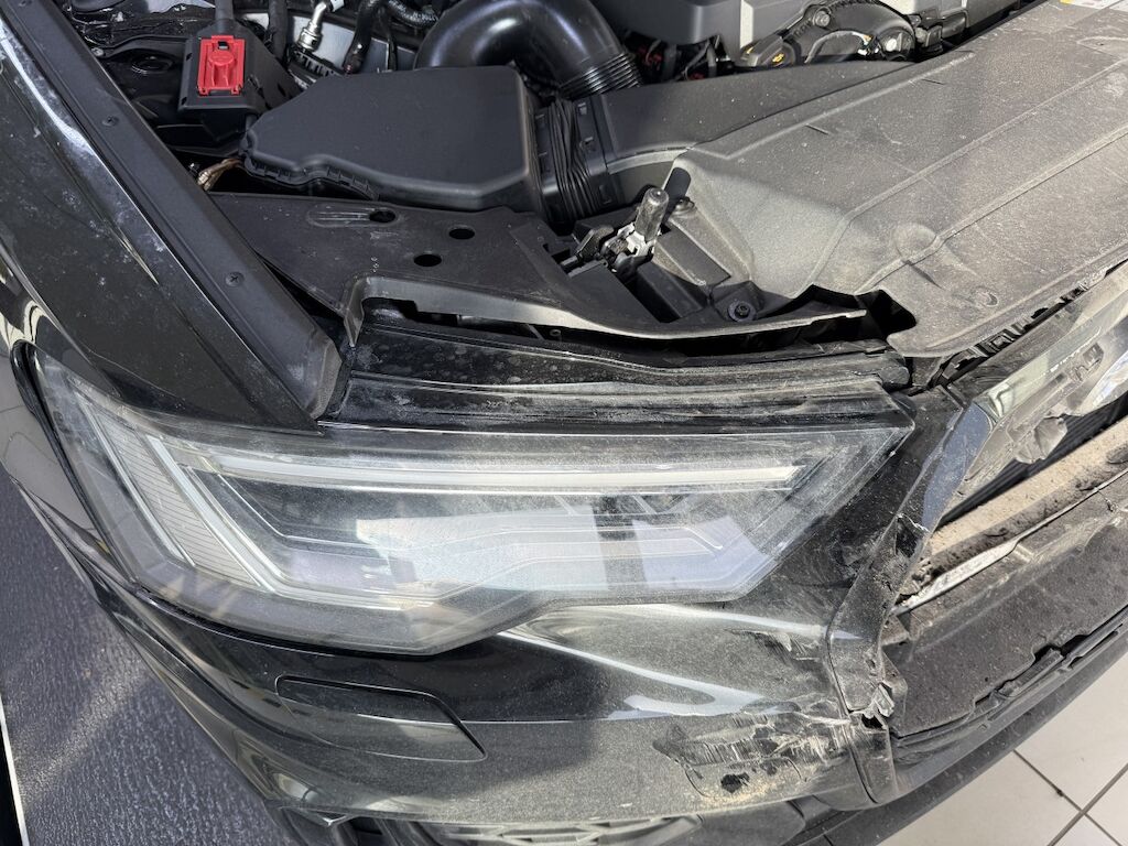 Frontschaden: Motorhaube geknickt. Front eingedrückt mit beschädigen Scheinwerfer, Kühlerpaket, Stossfänger mit Grill und beide Kotflügel.