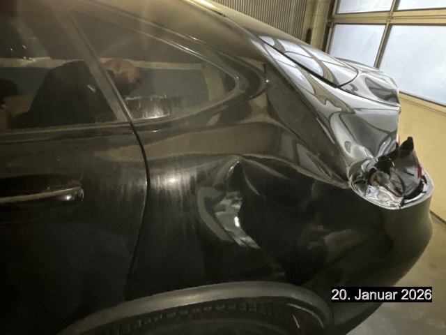Schadensbeschreibung Beschreibung der Schäden: Seitenwand, Heckklappe und Heckleuchten hinten links eingedrückt und zerkratzt