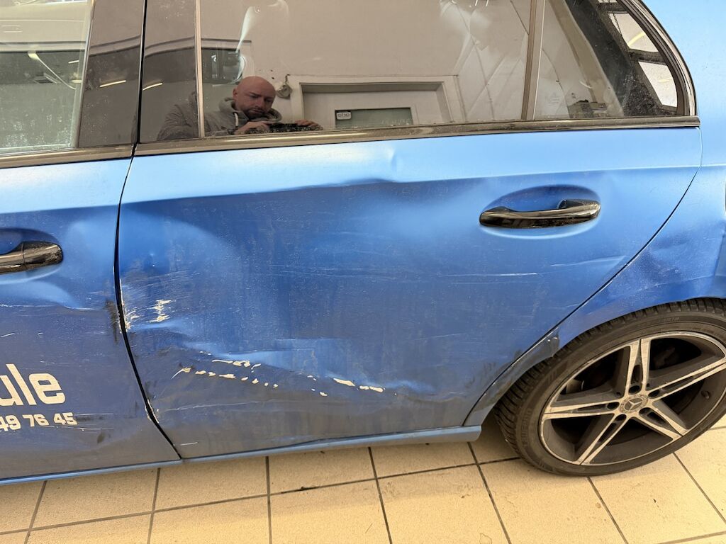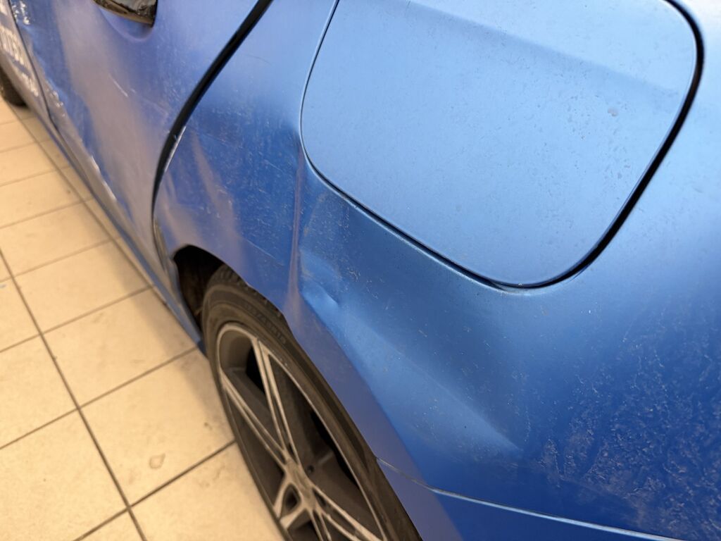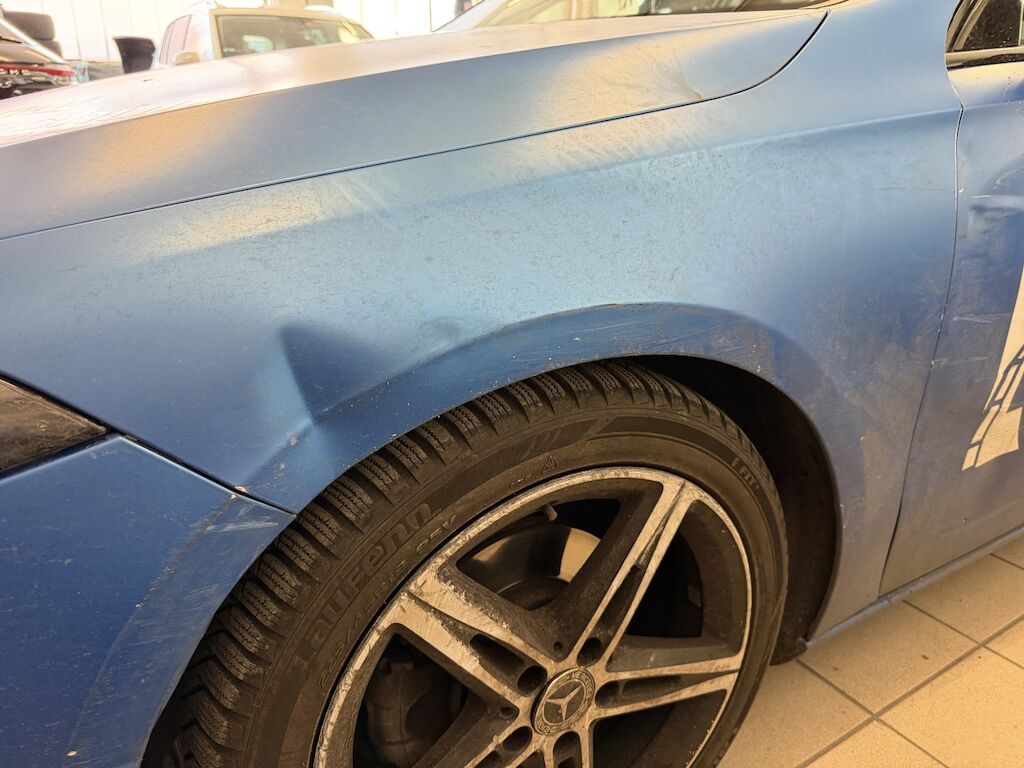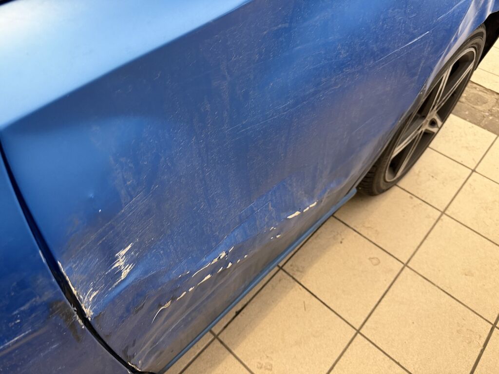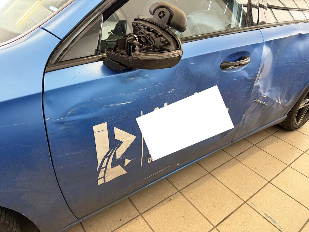 Schaden linke Seite: Stossstange vorne eingedrückt und verkratzt (Spotlackierung), Kotflügel vorne eingedrückt & verkratzt, Felgen v&h verkratzt (Lenkgeometrie kontr.), Türe v&h stark deformiert & verkratzt, Türgriff vorne stark beschädigt, hinten leicht verkratzt, Seitenwand stark eingedrückt und verkratzt, Aussenspiegelschale fehlt, Spiegelgehäuse ist gebrochen, Fahrzeug ist foliert, Motor läuft, Fahrzeug ist fahrbar.