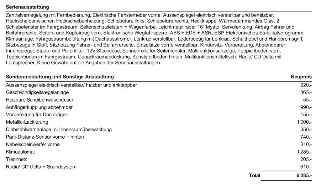Zum Fahrzeug gehört ein Bausatz, der sich der Innenraum zu einer ebenen Schlaffläche umbauen lässt (für Camper). Außerdem enthalten sind die abnehmbare Westfalia Anhängerkupplung sowie ein Satz Schneeketten.