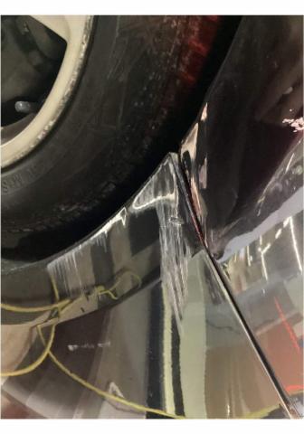 lineare Eindruckstelle von Stossfänger vorne rechts bis hin zu Heckstossfänger rechts. Lenkgeo Risiko, Reifen 5-6mm