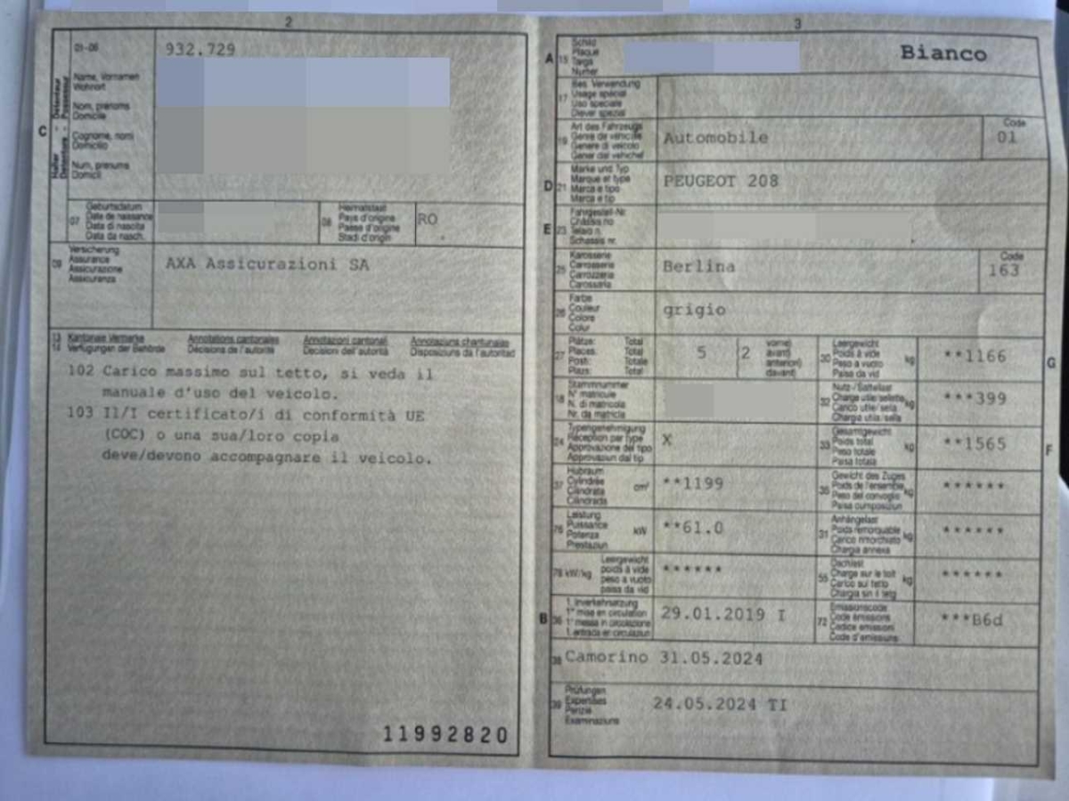 | Fahrzeugausweis | Vorhanden |