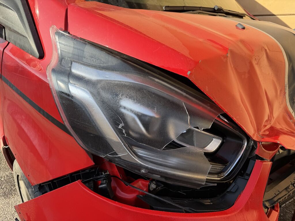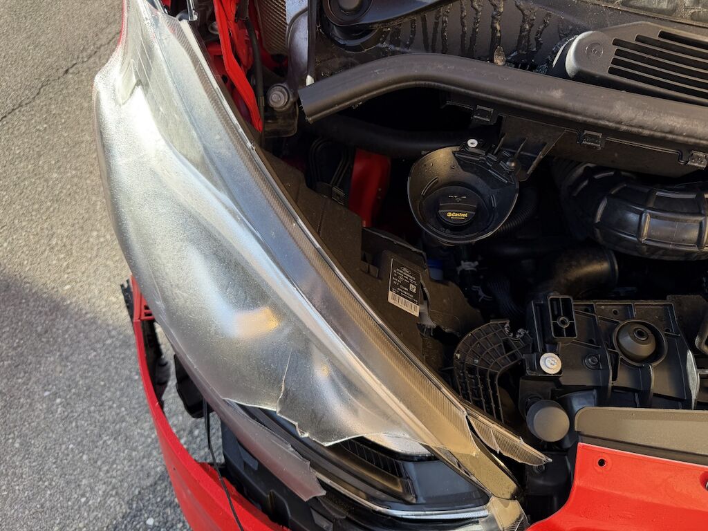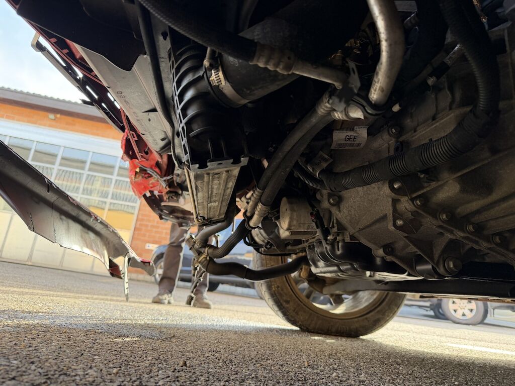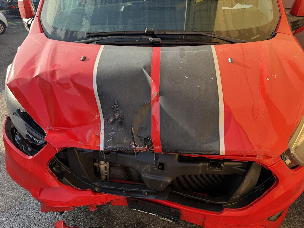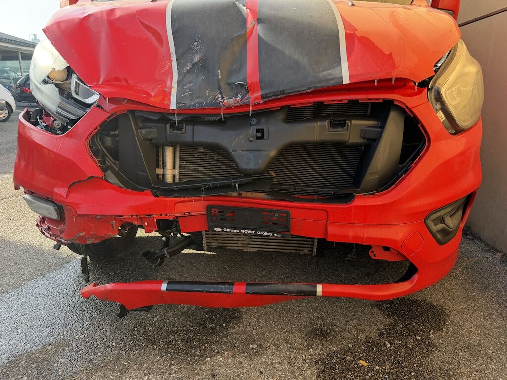 Frontschaden: Beide Scheinwerfer gebrochen, Stossstange inkl. Verstärkung, Schlossträger, Pralldämpfer, Kühlergrill und Motorhaube beschädigt, Kühlerpaket eingedrückt, Radhausblech innen deformiert, Kabelstrang gebrochen, Aussenspiegel rechts gebrochen, Frontscheibe gerissen, Gurtstraffer vl&vr ausgelöst, Motor läuft unrund, Fahrzeug nicht fahrbar, Aufzählung nicht abschliessend.