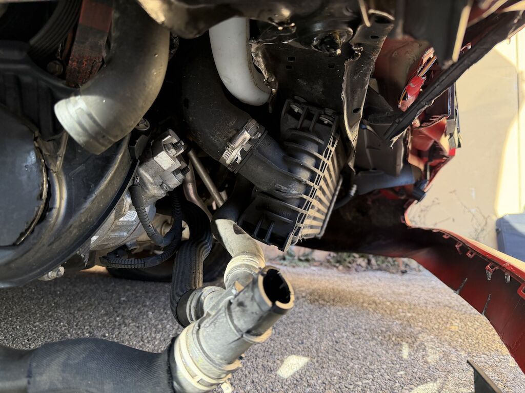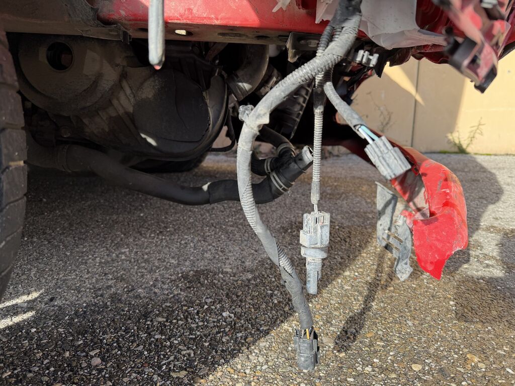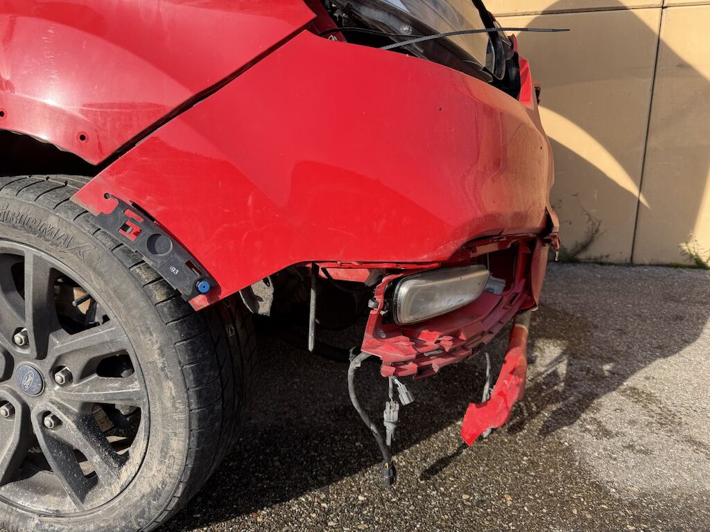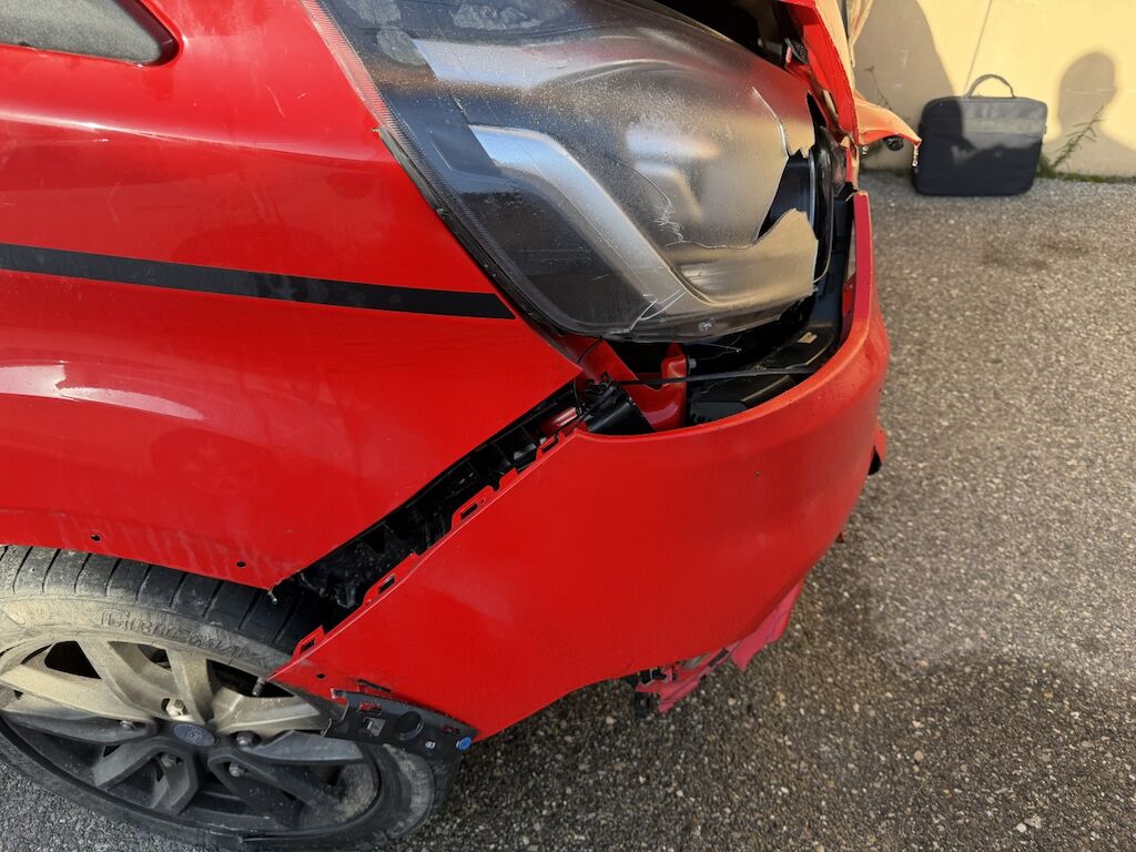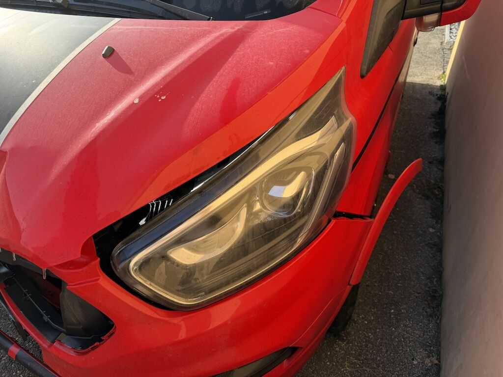 Frontschaden: Beide Scheinwerfer gebrochen, Stossstange inkl. Verstärkung, Schlossträger, Pralldämpfer, Kühlergrill und Motorhaube beschädigt, Kühlerpaket eingedrückt, Radhausblech innen deformiert, Kabelstrang gebrochen, Aussenspiegel rechts gebrochen, Frontscheibe gerissen, Gurtstraffer vl&vr ausgelöst, Motor läuft unrund, Fahrzeug nicht fahrbar, Aufzählung nicht abschliessend.