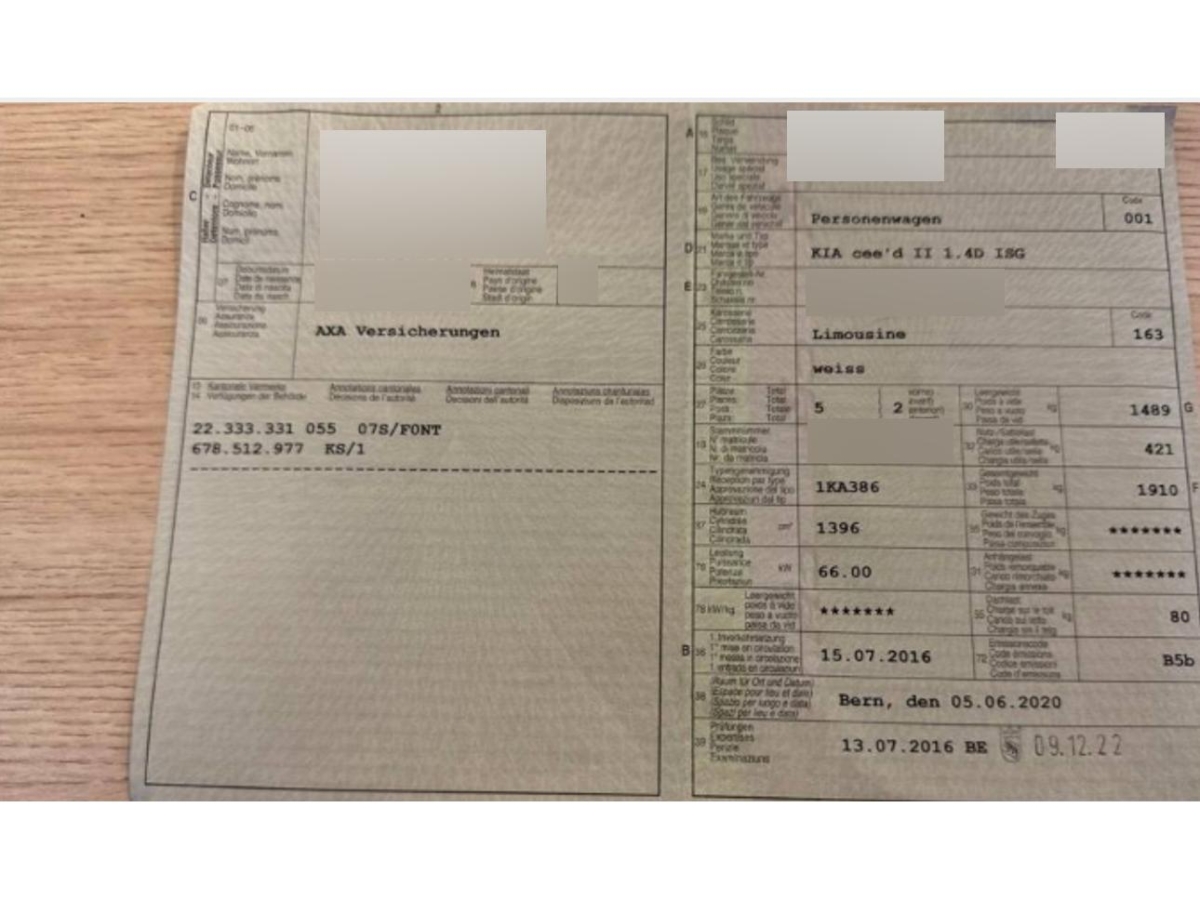 Fahrzeugausweis Vorhanden