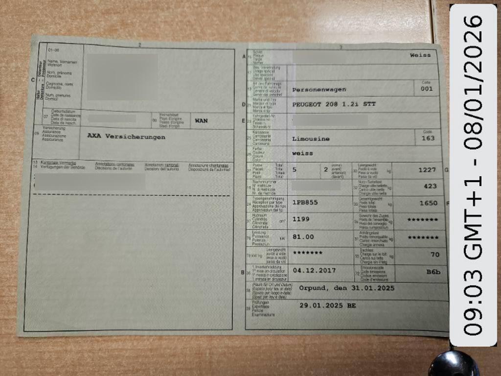| Fahrzeugausweis | Vorhanden |