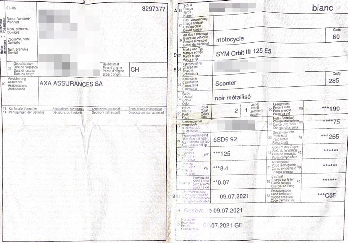| Fahrzeugausweis | Vorhanden |