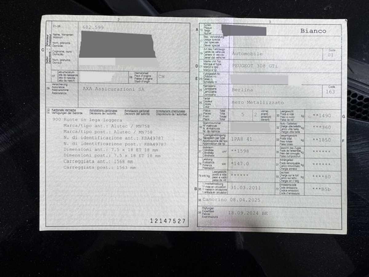 | Fahrzeugausweis | Vorhanden |