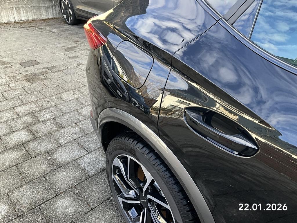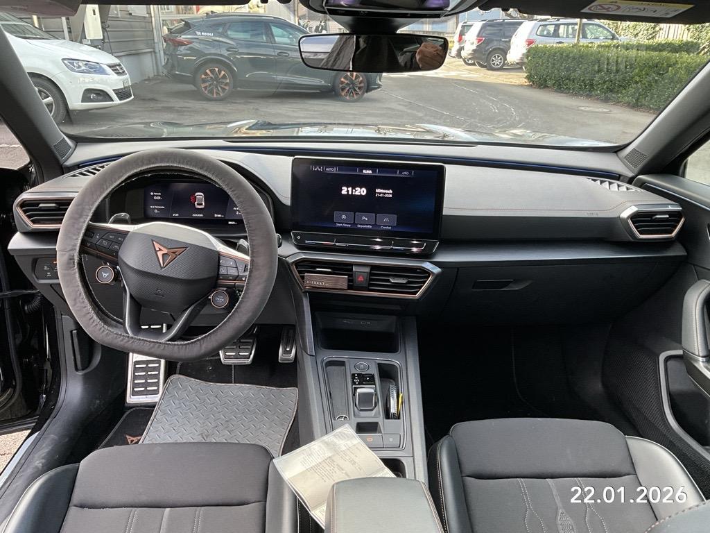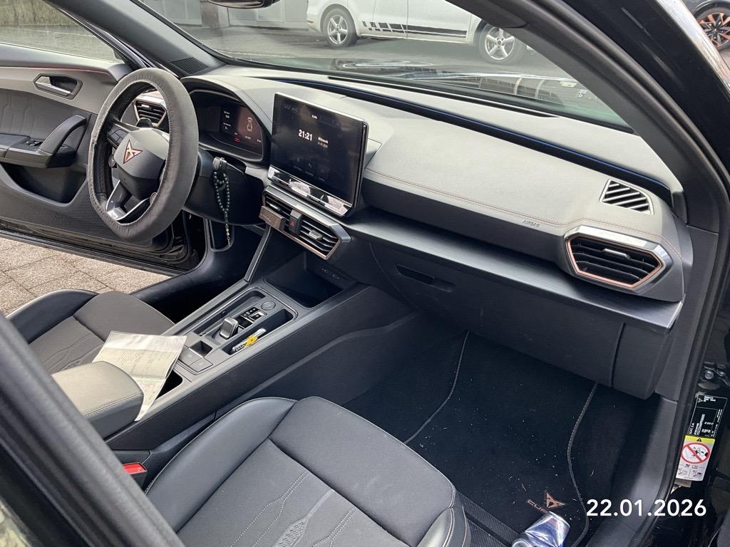 Assist: City Notbremsfunktion, Media: 12″ Infotainment (MIB3), Allradantrieb permanent, Assist: Multifunktionskamera, Media: Mobiltelefon Freisprechanlage Bluetooth, Garantie: Cupra 3 Jahre Lack-Gewährleistung (ab 1. Inv.), Sitze: Schublade unter dem rechten Vordersitz, Licht: LED-Nebelscheinwerfer mit Cornering-Funktion, Licht: Nebelschlussleuchte, Servolenkung mit geschwindigkeitsabhängiger Lenkkraftunterstützung, Dreipunkt-Automatiksicherheitsgurte auf allen Plätzen, Abgedunkelte Scheiben ab B-Säule hinten, Assist: Automatische Distanzregelung ACC, Ottopartikelfilter, Airbag: Airbag Beifahrer deaktivierbar, Media: 2 USB C Anschlüsse hinten und vorne, Bordwerkzeug, Sitze: Vordersitze höhenverstellbar mit Lendenwirbelstütze, Pyrotechnische Gurtstraffer und Gurtkraftbegrenzer, Assist: Speedlimiter, Full Digital Cockpit, Mittelarmlehne vorne und hinten, Assist: Regen-/Lichtsensor, LED-Innenraumbeleuchtung mit Ambientebeleuchtung Smart Wraparound “Multicolor”, Sitze: CUPRA Sport Schalensitze in “Sharp Textil schwarz”, Assist: Elektronische Parkbremse mit Auto Hold Funktion, Heckscheibenheizung, Media: DAB+ (Digital Audio Broadcasting), Licht: Durchgehende Full LED-Heckleuchten, Airbag: Kopfairbags vorne und hinten, Assist: Multikollisionsbremse, Licht: Drittes Bremslicht, Media: Sprachsteuerung, Heckspoiler, Räder: Ersatzrad platzsparend, 230-Volt Steckdose im Kofferraum und 12-Volt Steckdose in der Mittelkonsole, Lackierung: Uni-Lackierung, Airbag: Seitenairbags für Fahrer und Beifahrer, Klima: 3-Zonen Climatronic mit Fondraumbedienung, Assist: PreCrash Sicherheitssystem, Beleuchtete Sonnenblende links mit abdeckbarem Spiegel und Lasche, rechts mit abdeckbarem Spiegel, Lenkrad: Supersportlenkrad mit Start-/ Drive Profile-Knopfsystem und Schaltwippen, beheizbar, Licht: LED-Scheinwerfer für Abblend- und Fernlicht, Garantie: Cupra Garantie 2 Jahre ohne Kilometerbegrenzung (ab 1. Inv.), Media: CUPRA Navigationssystem 12” 3D Infotainment (MIB3) – Kartenmaterial “Europa”, – CUPRA Connect Remote & Access für Navigationssystem (Erstes Jahr kostenlos) – CUPRA Connect Online Infotainment für Navigationssystem (Erstes Jahr kostenlos), Variabler Ladeboden, Licht: LED-Tagfahrlicht, Licht: Coming-home-Funktion, Aussenspiegel elektrisch einstell-, beheiz- und einklappbar, Fussmatten vorne und hinten, Garantie: Cupra 12 Jahre Gewährleistung gegen Karosserie-Durchrostung (ab 1. Inv.), Elektrische Fensterheber vorne und hinten mit Komfortschaltung und Einklemmschutz, Kindersitzverankerung ISOFIX (äussere Plätze hinten), Automatisch abblendender Innenrückspiegel, Türgriffe in Wagenfarbe, Heckscheiben-Wisch-/Waschanlage mit Intervall, Drehzahlmesser, Stopp – Start- und Rekuperationssystem, Dachreling schwarz, ESC mit EBA, DSR, XDS und Reifendruckkontrolle, Vollverzinkte Karosserie, Fahrwerk: Adaptive Fahrwerksregelung DCC, Media: CUPRA Connect Safety & Services für Navigationssystem, Assist: Umfeldbeobachtung Front-Assist, Airbag: Airbag Fahrer und Beifahrer, Getriebe: 7-Gang DSG, Aussenspiegel mit Beifahrerspiegelabsenkung, Dachhimmel schwarz, CUPRA Drive Profile mit “driving experience button” Comfort, Sport, CUPRA, Individual, Snow, Offroad, Sportauspuffanlage mit 4-fach Endrohr, Sitze: Geteilt abklappbare Rücksitzlehne 1/3 – 2/3, Assist: Rückfahrkamera, Assist: Tiredness detection (Müdigkeitserkennung), Schlüsselloses Schliess- und Startsystem (KESSY), Licht: LED-Heckleuchten mit dynamischem Blinklicht, Fahrwerk: Progressivlenkung, Media: 7 Lautsprecher, ABS, EBV elektronische Bremskraft-verteilung, Räder: Alufelgen 8J x 19″, “EXCLUSIVE” 38/3 Machined Black Matt / Silver (245/45 R19), Sitze: 2 verstellbare Kopfstützen vorne und 3 hinten, Heckdiffusor, Wegfahrsperre elektronisch, Airbag: Knieairbag auf der Fahrerseite, Licht: Leuchtweitenregulierung dynamisch, Aussenspiegel mit LED-Umfeldbeleuchtung, Zentralverriegelung mit Funkfernbedienung, 2 Funkschlüssel
