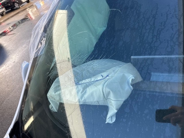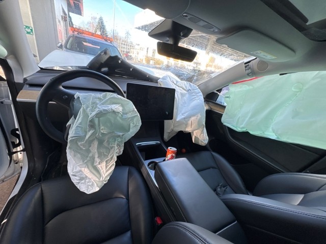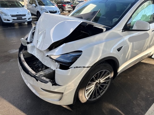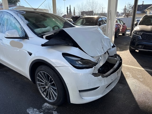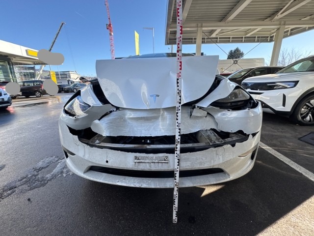 Beschädigungen Front Fussgängerschutz ausgelöst. Front eingedrückt. Frontblech/Maskenblech eingedrückt. Radhaus vorne rechts und links eingedrückt. Längsträger vorne rechts und links gestaucht. Motor Achse Innenraum Glas Weitere Beschädigungen |