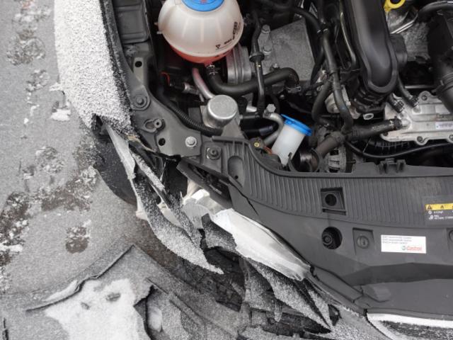 Beschädigungen Front Front eingedrückt. Kotflügel vorne rechts eingedrückt. Motorhaube eingedrückt. Frontblech/Maskenblech eingedrückt. Radhaus vorne rechts eingedrückt / gestaucht. Innenraum Weitere Beschädigungen |