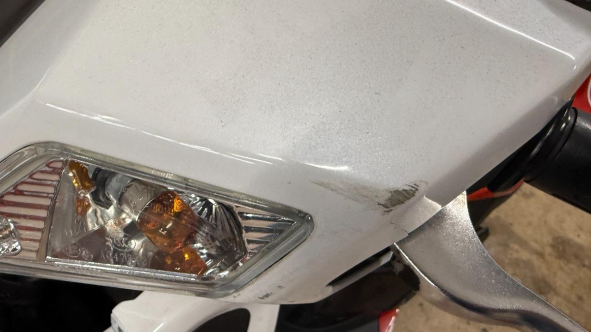 Auspufftopf, Aussenspiegel links, Aussenspiegel rechts, Diverse Anbauteile, Front, Fussraster links, Fussraster rechts, Gabelholm, Griff links, Griff rechts, Lenker, Rad vorne, Rahmen, Scheinwerfer, Schutzblech vorne, Seite links, Seite rechts, Verschalungen links, Verschalungen rechts, Verschalungen vorne