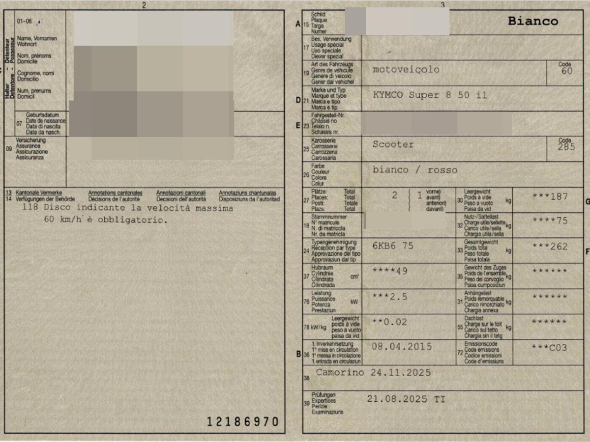 | Fahrzeugausweis | Fehlt |