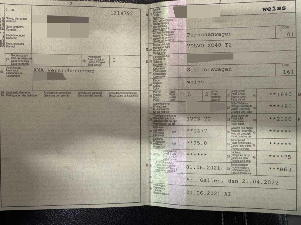 | Fahrzeugausweis | Vorhanden |